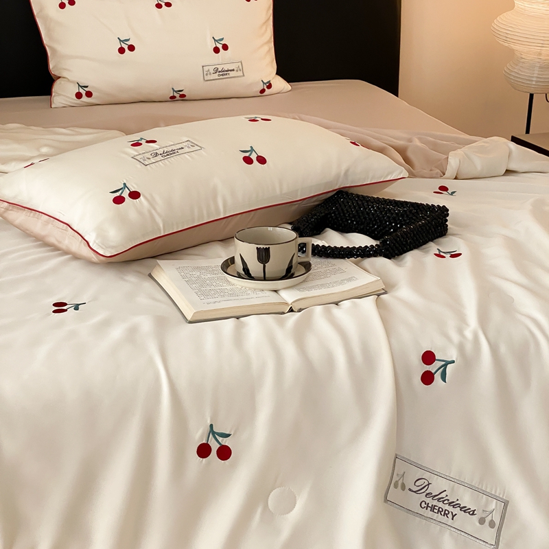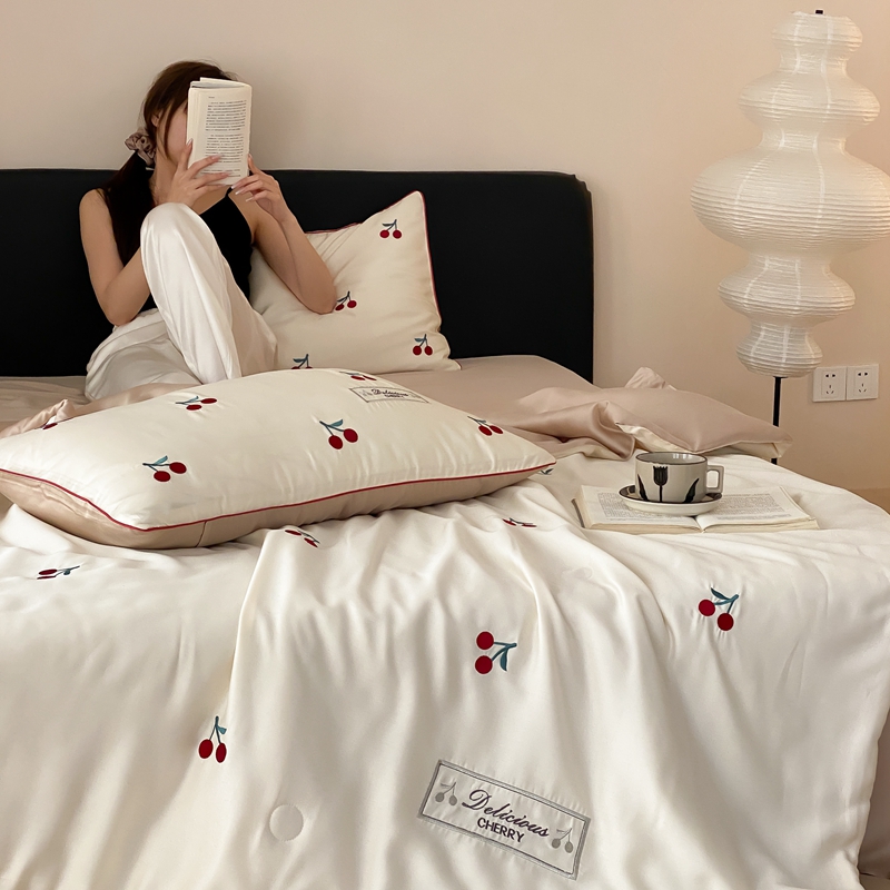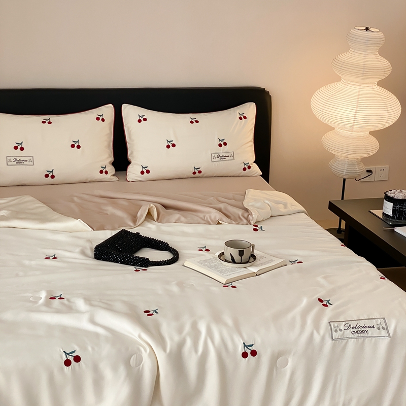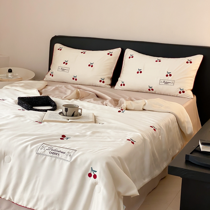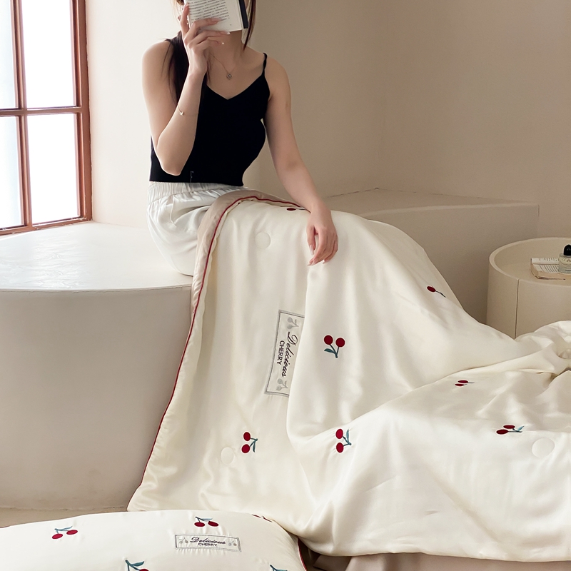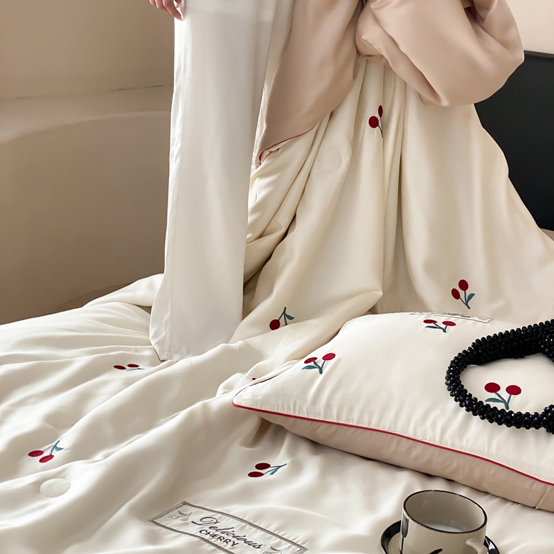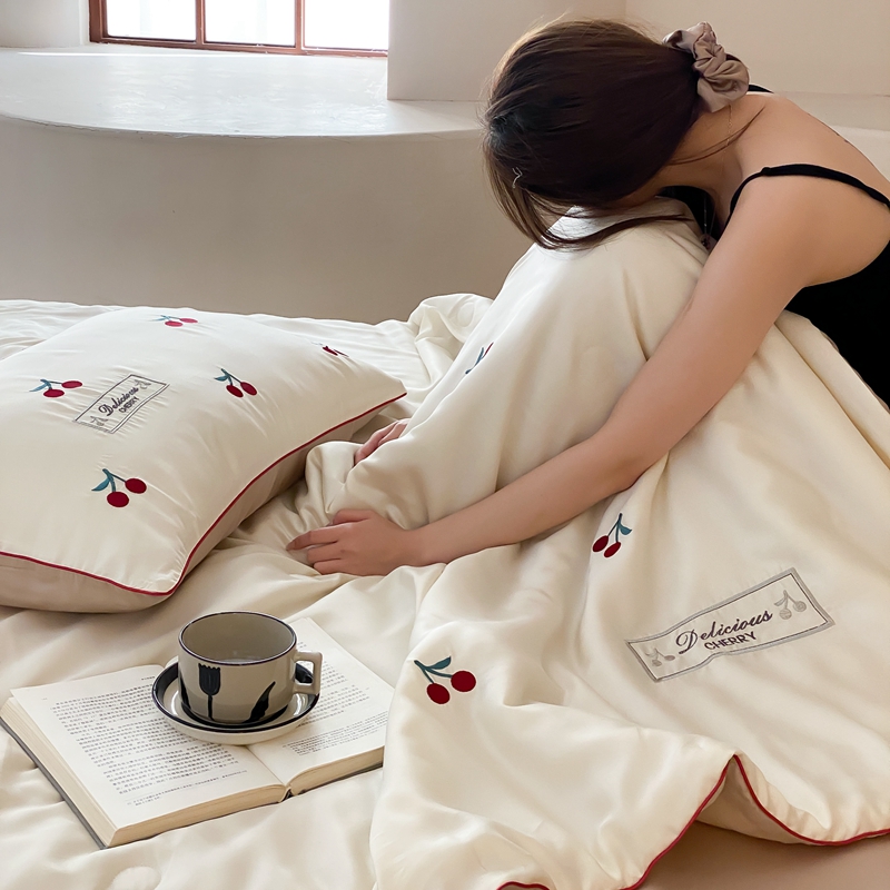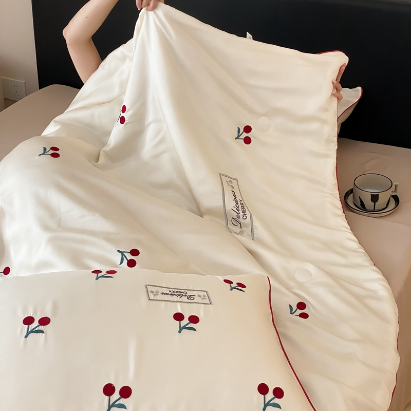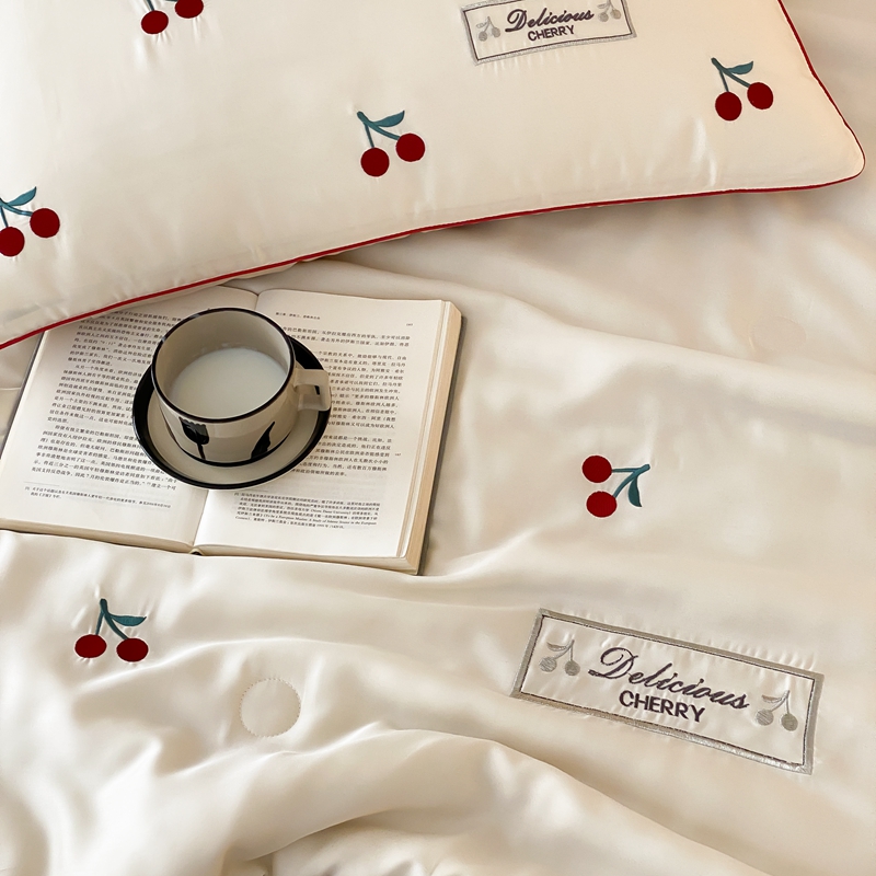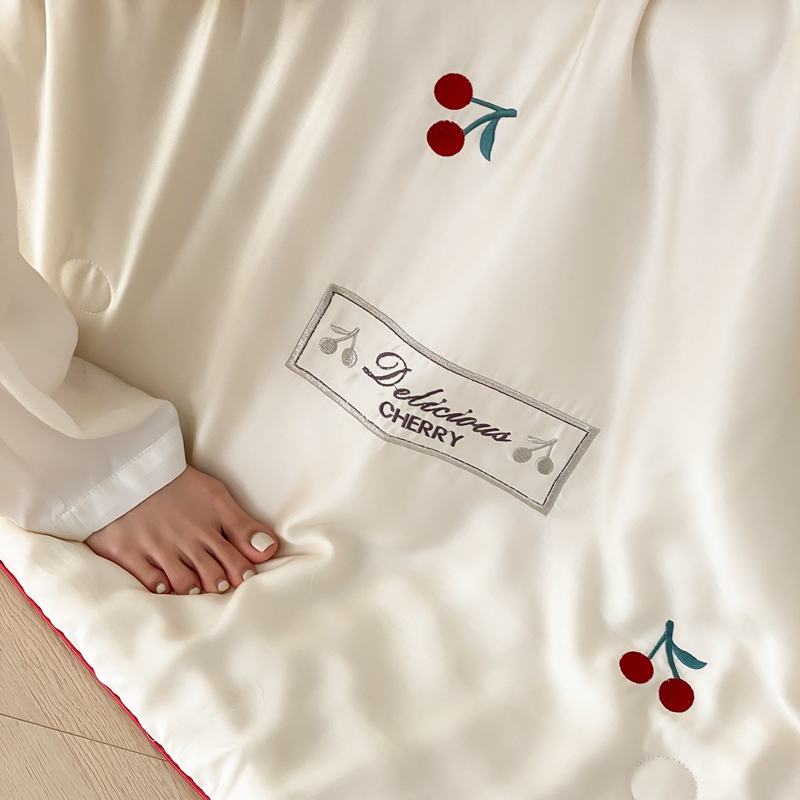 (总)时亿 2024新款80支兰精天丝刺绣樱桃夏被