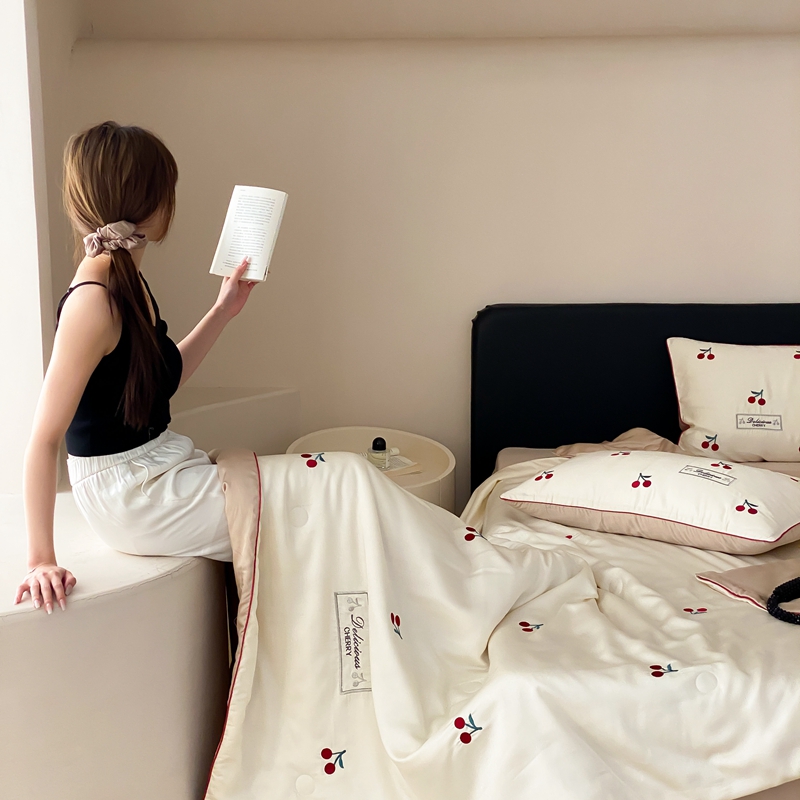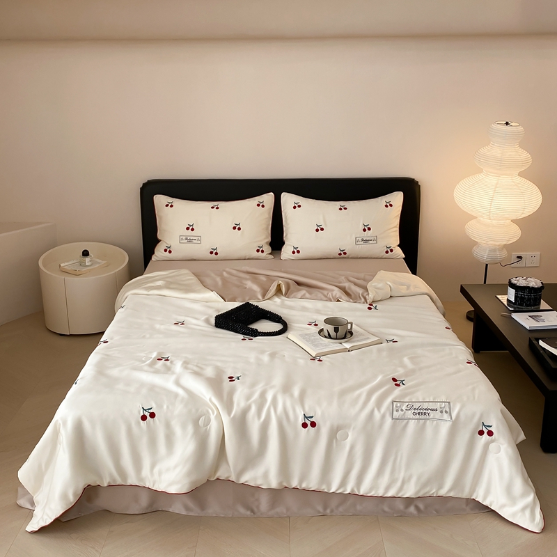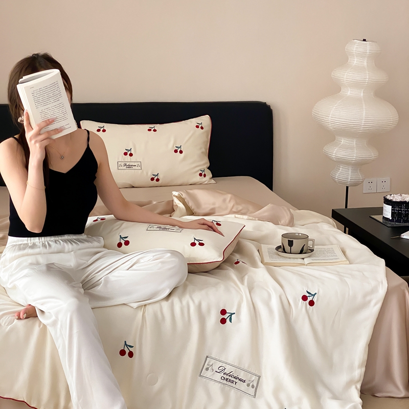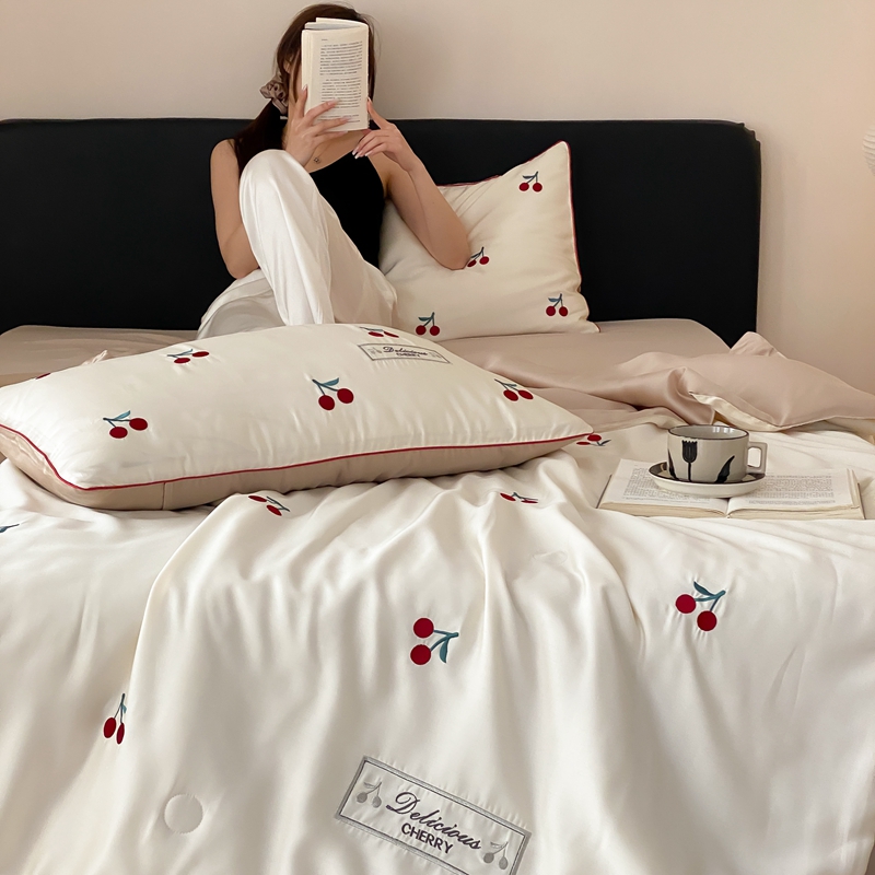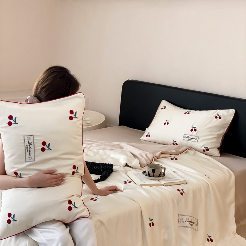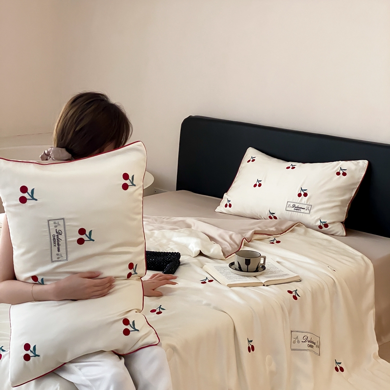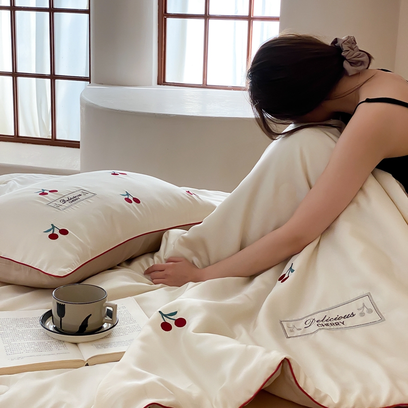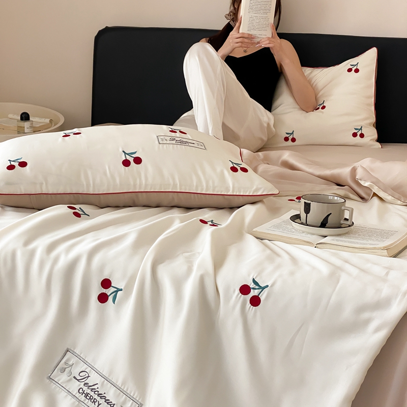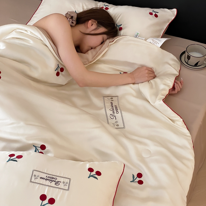 (总)时亿 2024新款80支兰精天丝刺绣樱桃夏被