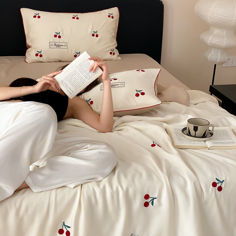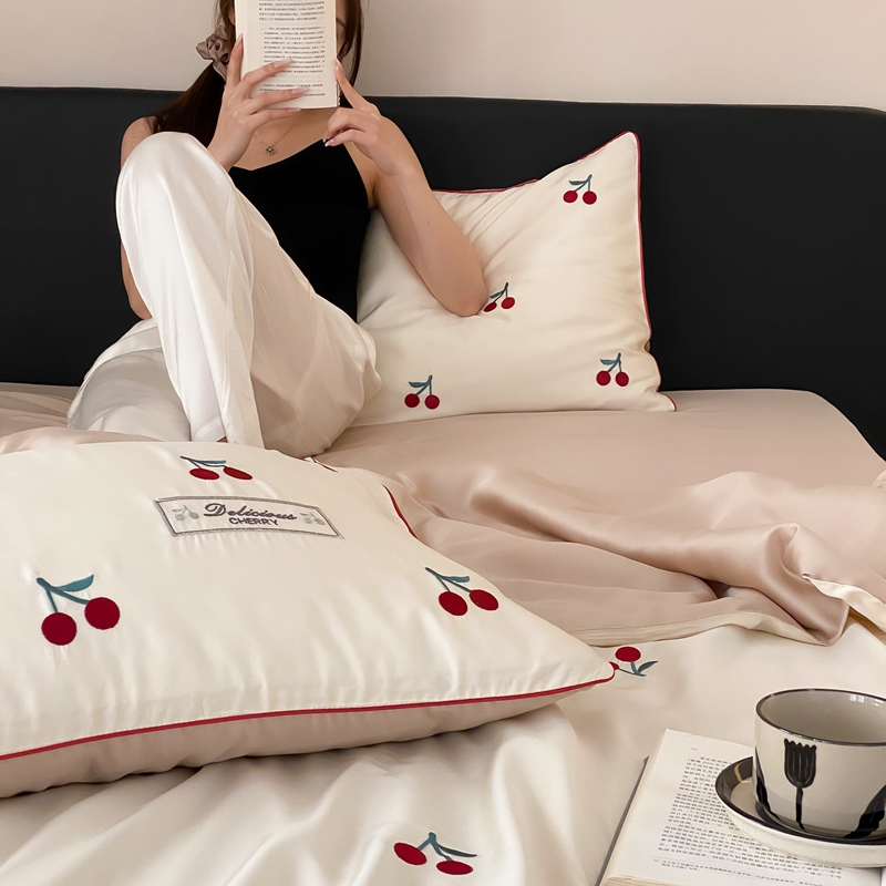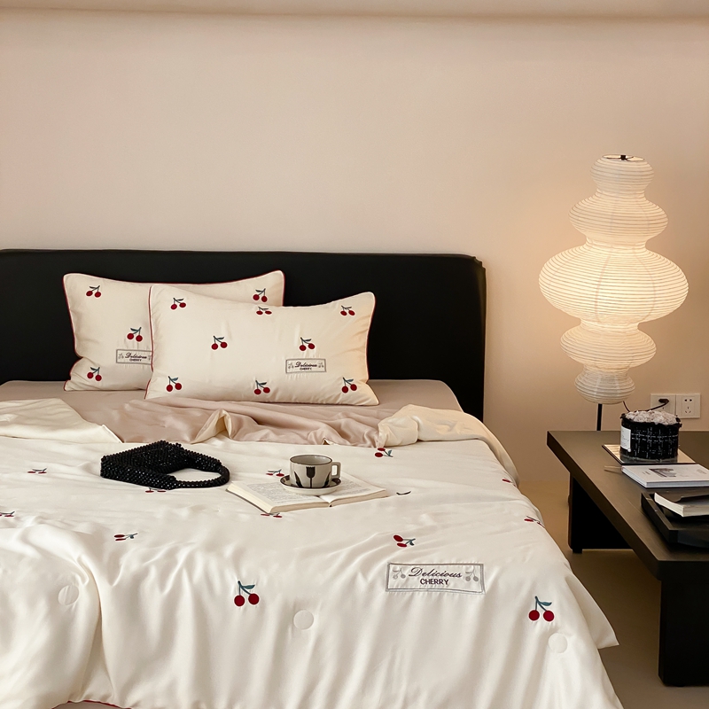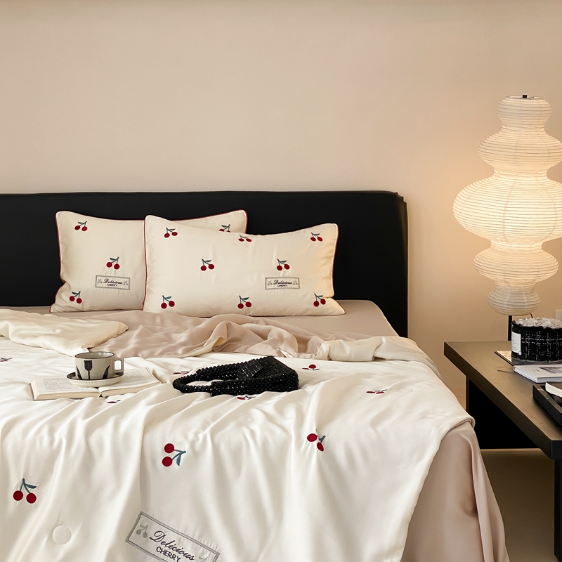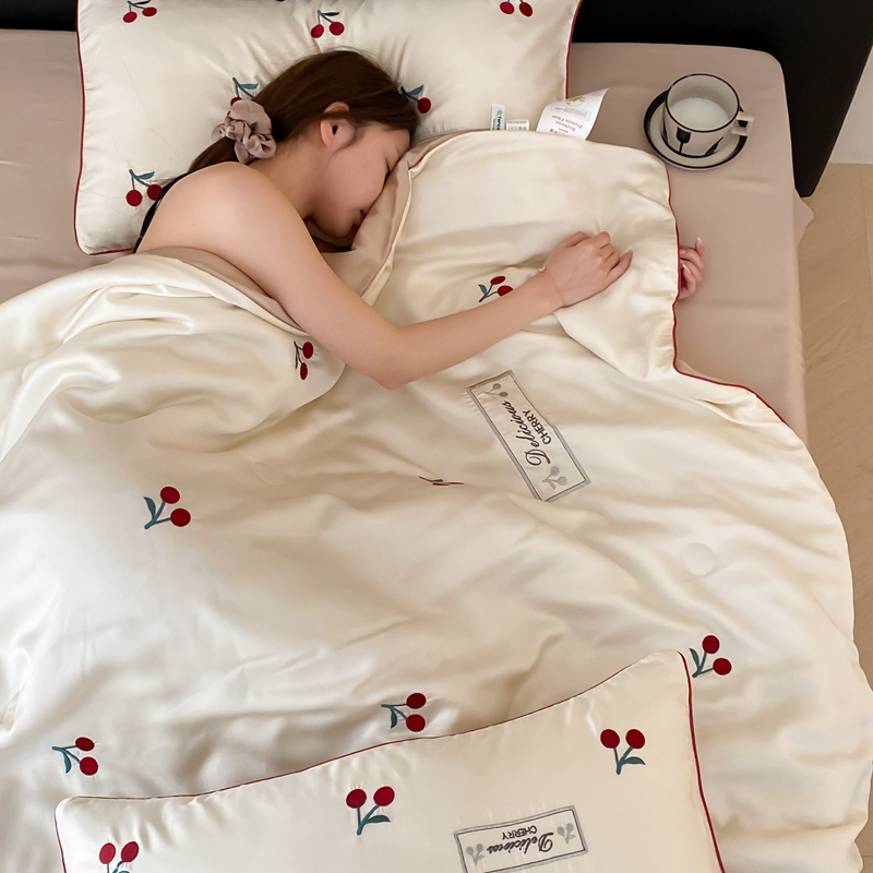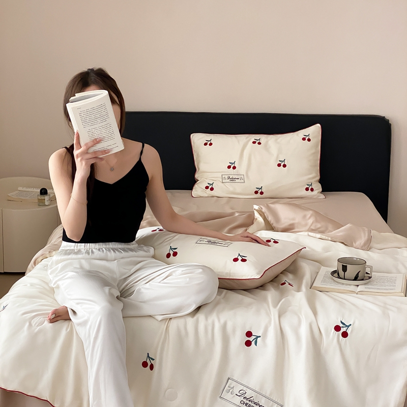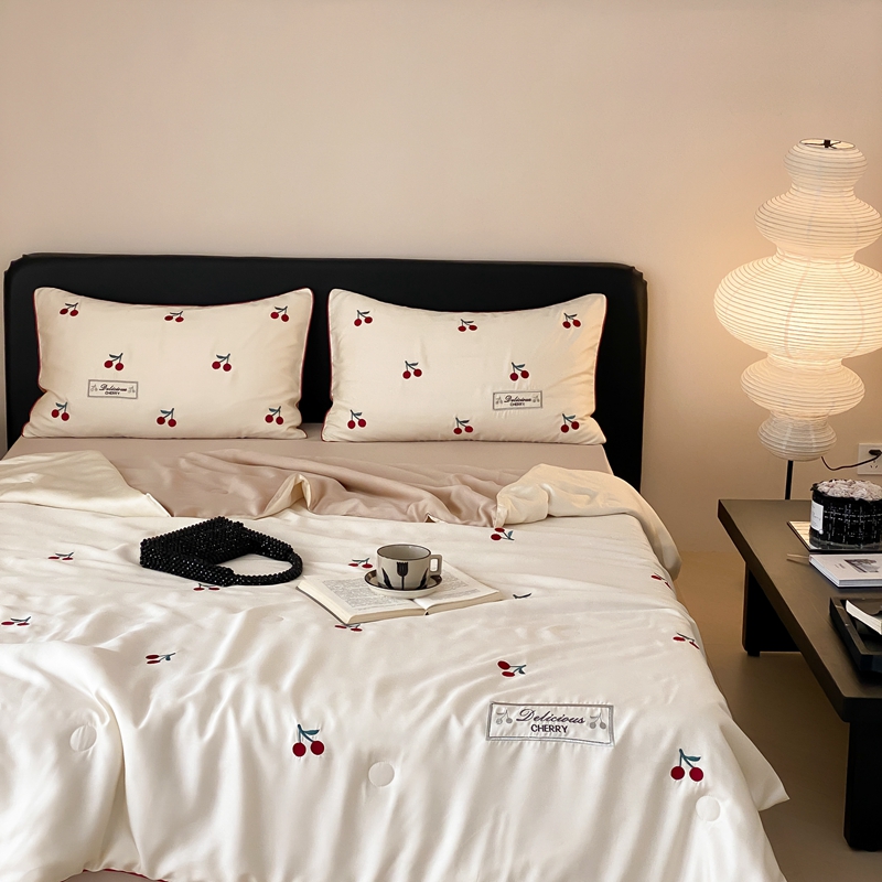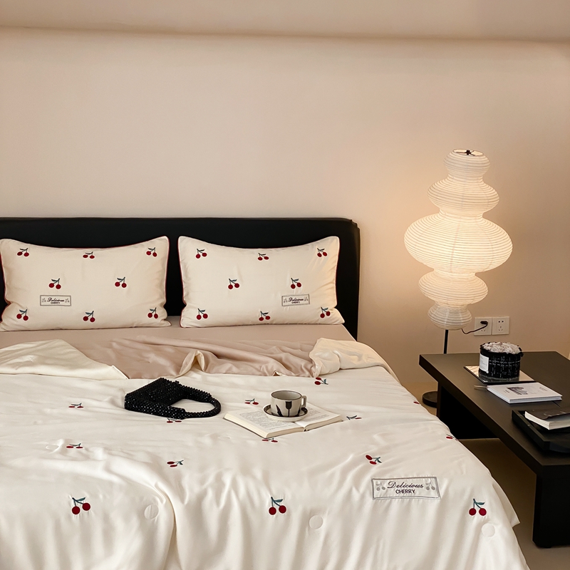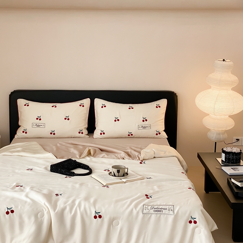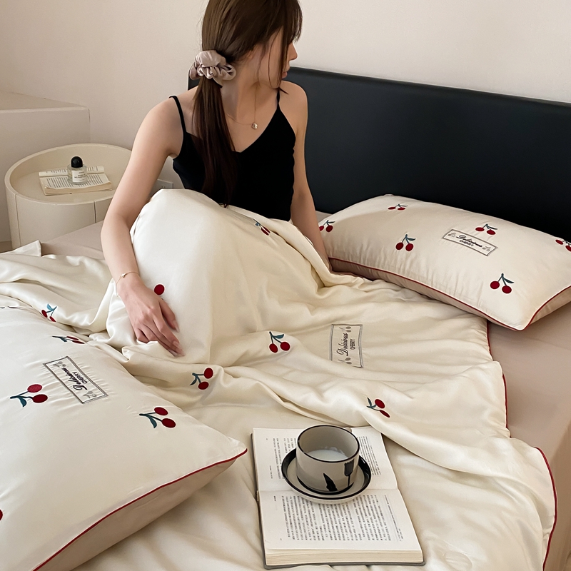 (总)时亿 2024新款80支兰精天丝刺绣樱桃夏被
