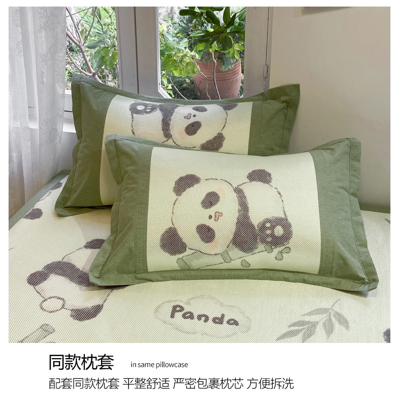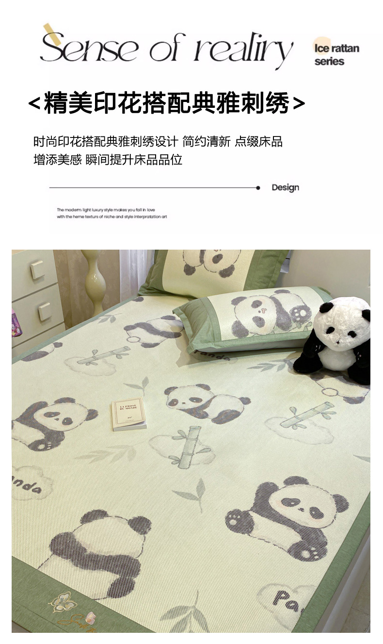 慕澄2024新款A类时尚印花刺绣冰藤凉席 床笠款-熊猫戏竹