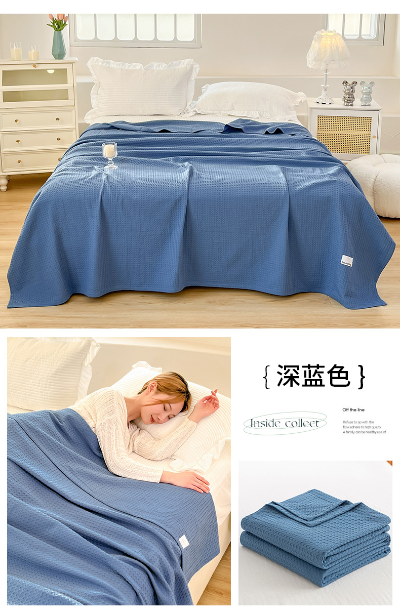 商品名称:乐家毛巾被(工厂自产自销) 2024新款全棉华夫格毛巾被 深蓝色