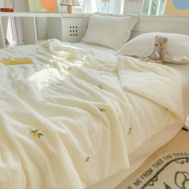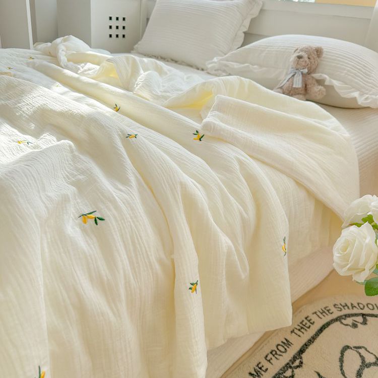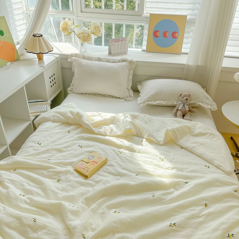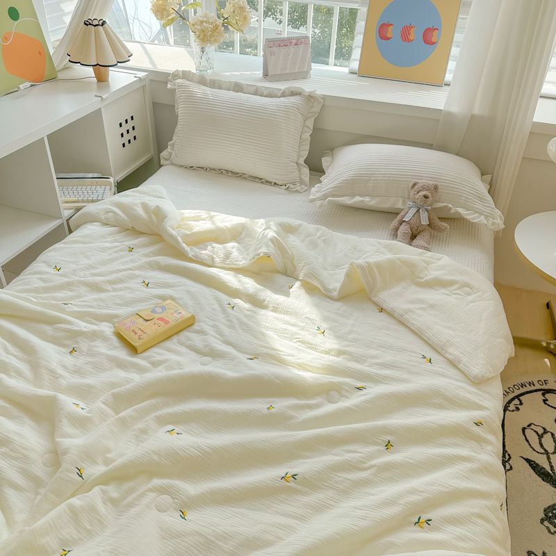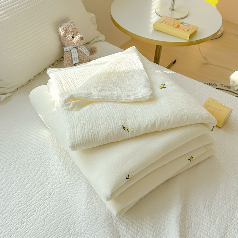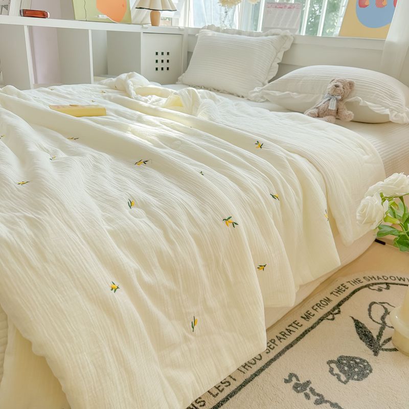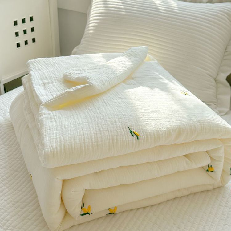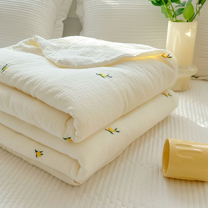 盼季家纺 2024新款A类母婴级双层皱皱纱水洗棉夏被夏凉被空调被 ins-日系小花