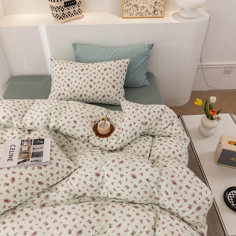 商品名称:优姿家纺2024新款A类全棉针织棉系列四件套 朝颜-绿