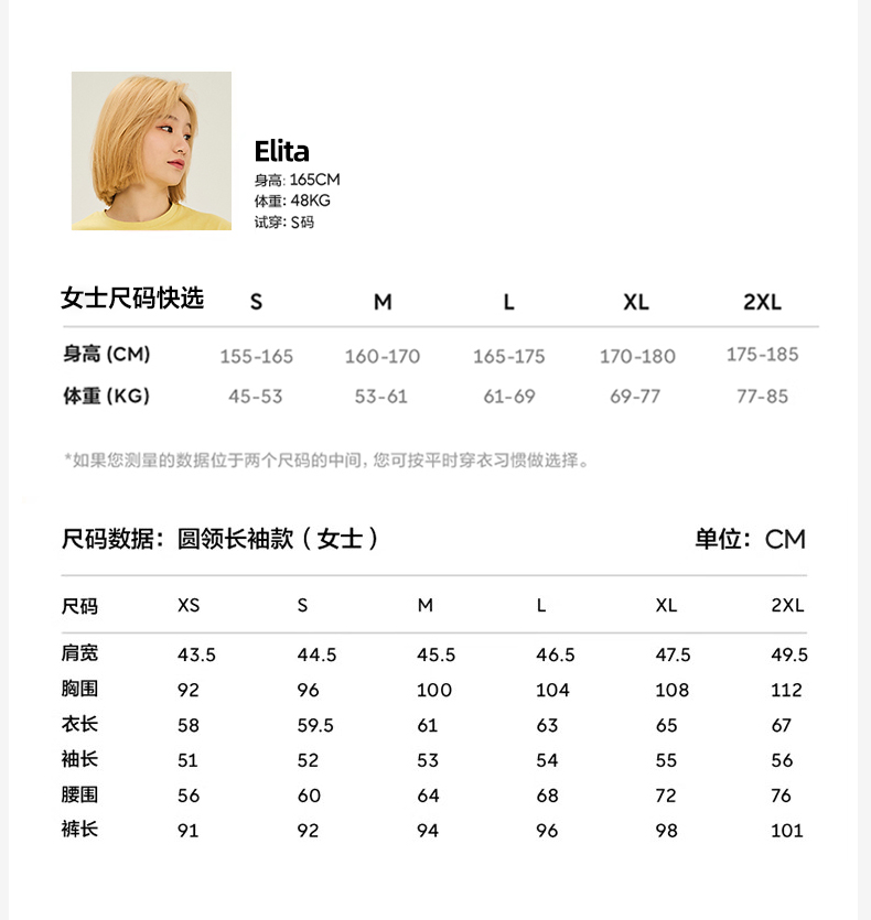 EH 2024新款全棉男女情侣款家居服-男女款圆领 女款鹅黄色