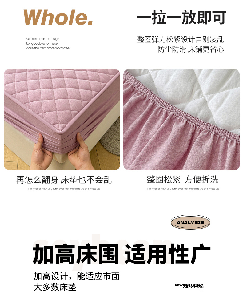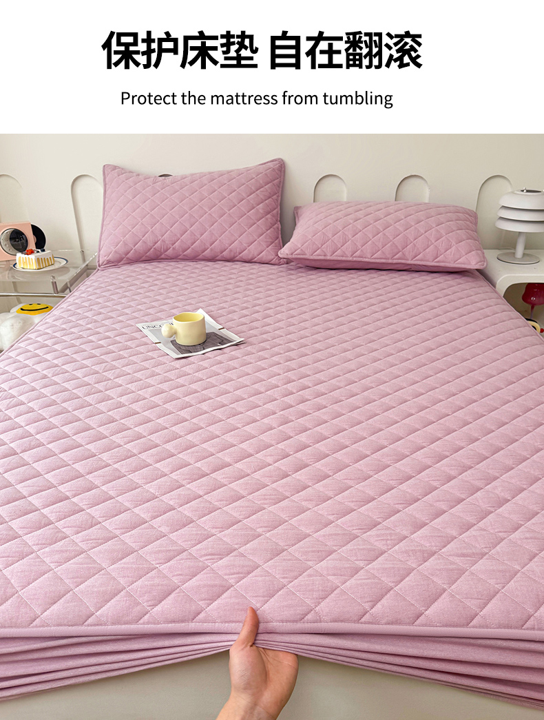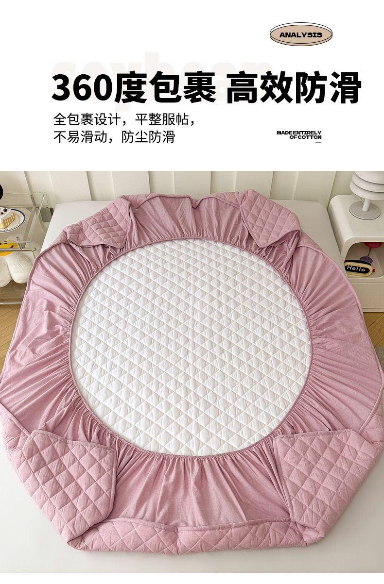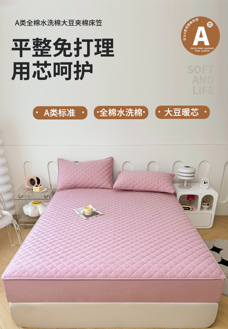 糯米猪家纺 2024新款全棉水洗棉大豆夹棉床笠 罗兰紫