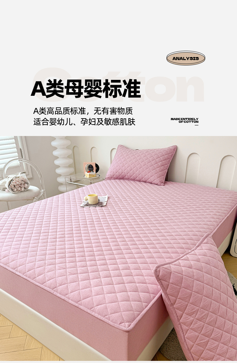 (总)糯米猪家纺 2025春夏新款亲肤棉六面全包防水压花床笠单件单床笠,组合图仅供展示,典雅白,高级灰,静谧绿,浅卡其,水雾蓝,樱花粉