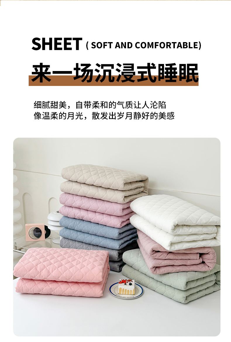 (总)糯米猪家纺 2025新款全棉纯棉色织水洗棉六面全包床笠,白,粉,灰,卡其,蓝,绿