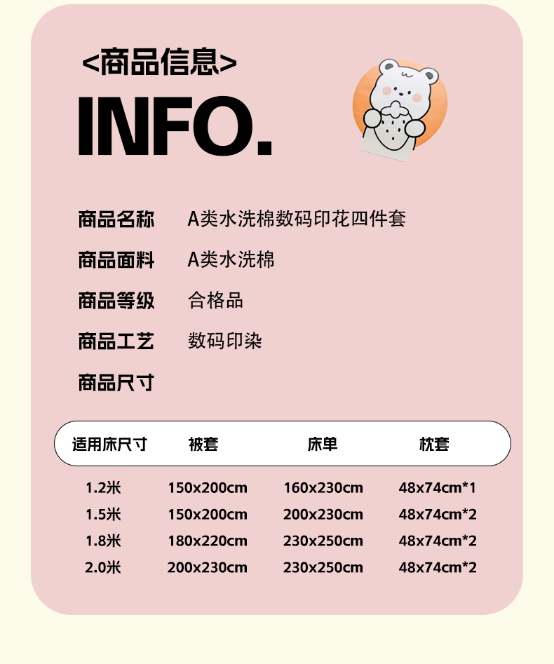 1.8m床笠款四件套-被套200*230 | ¥68.00 |