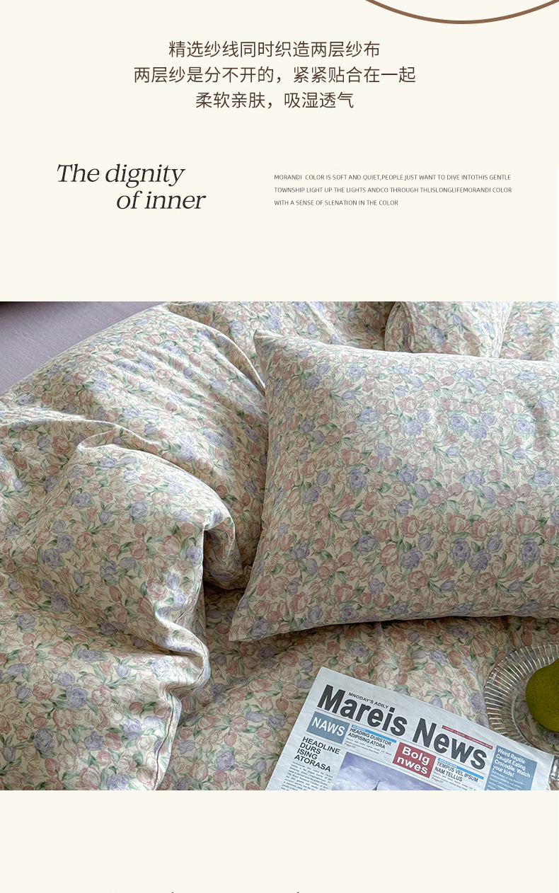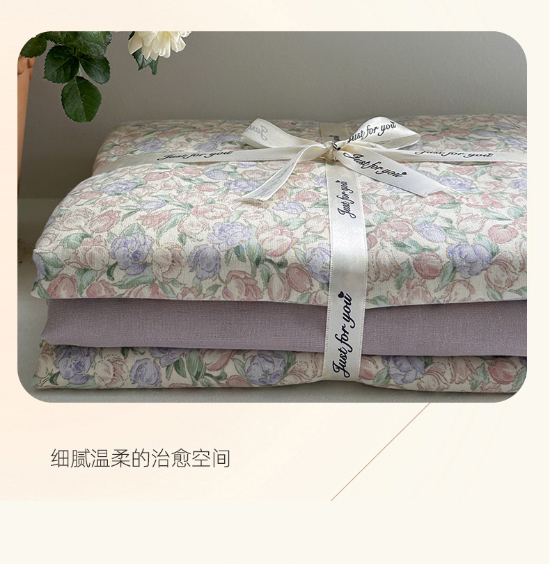 当前位置: 91家纺网 > 商品网购 > 床品套件 > 四件套 > 全棉普通四件套 > 麦伦家居 2024新款A类全棉双层纱系列四件套-影棚图 粉郁