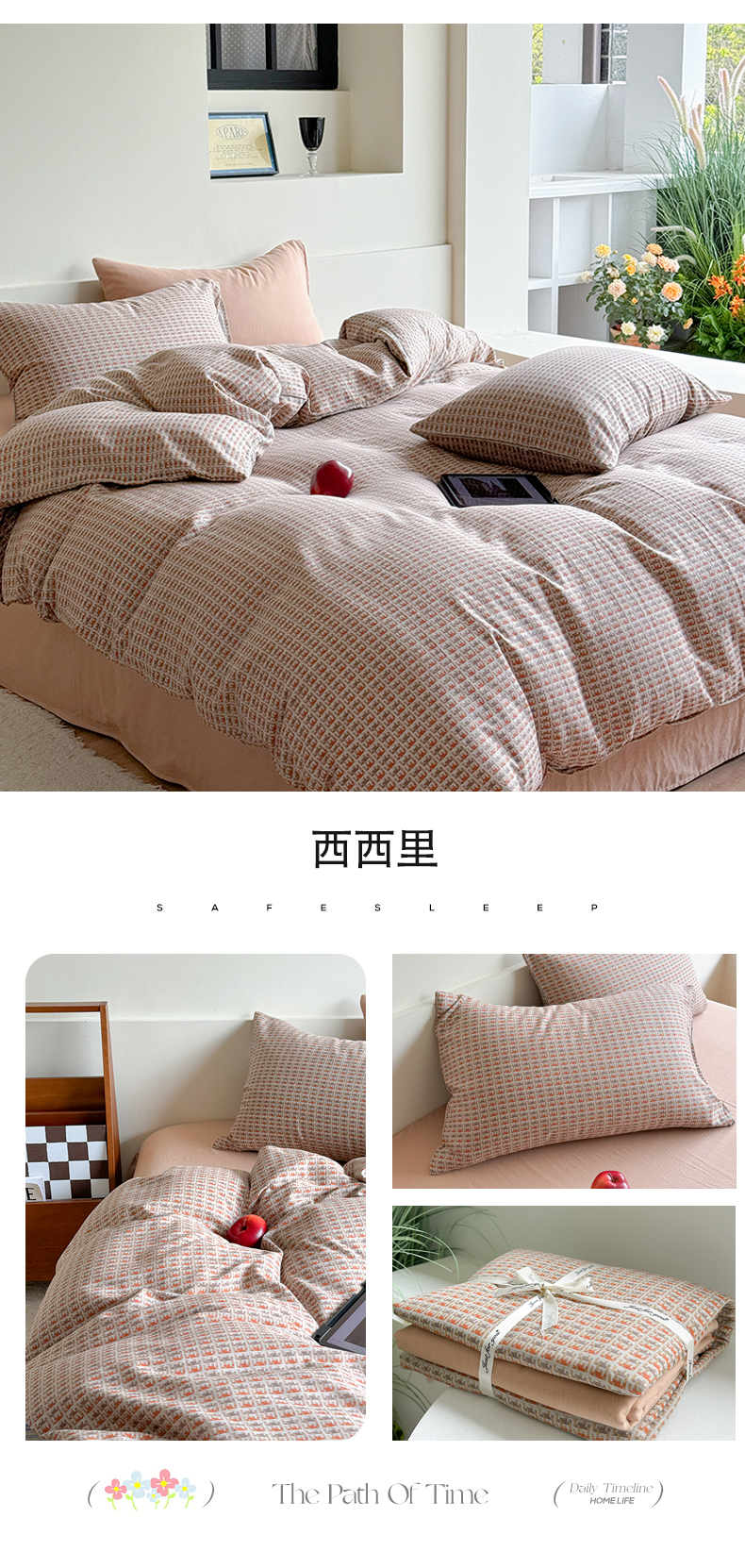 当前位置: 91家纺网 > 商品网购 > 床品套件 > 四件套 > 全棉普通四件套 > 麦伦家居 2024新款A类全棉双层纱系列四件套-影棚图 西西里