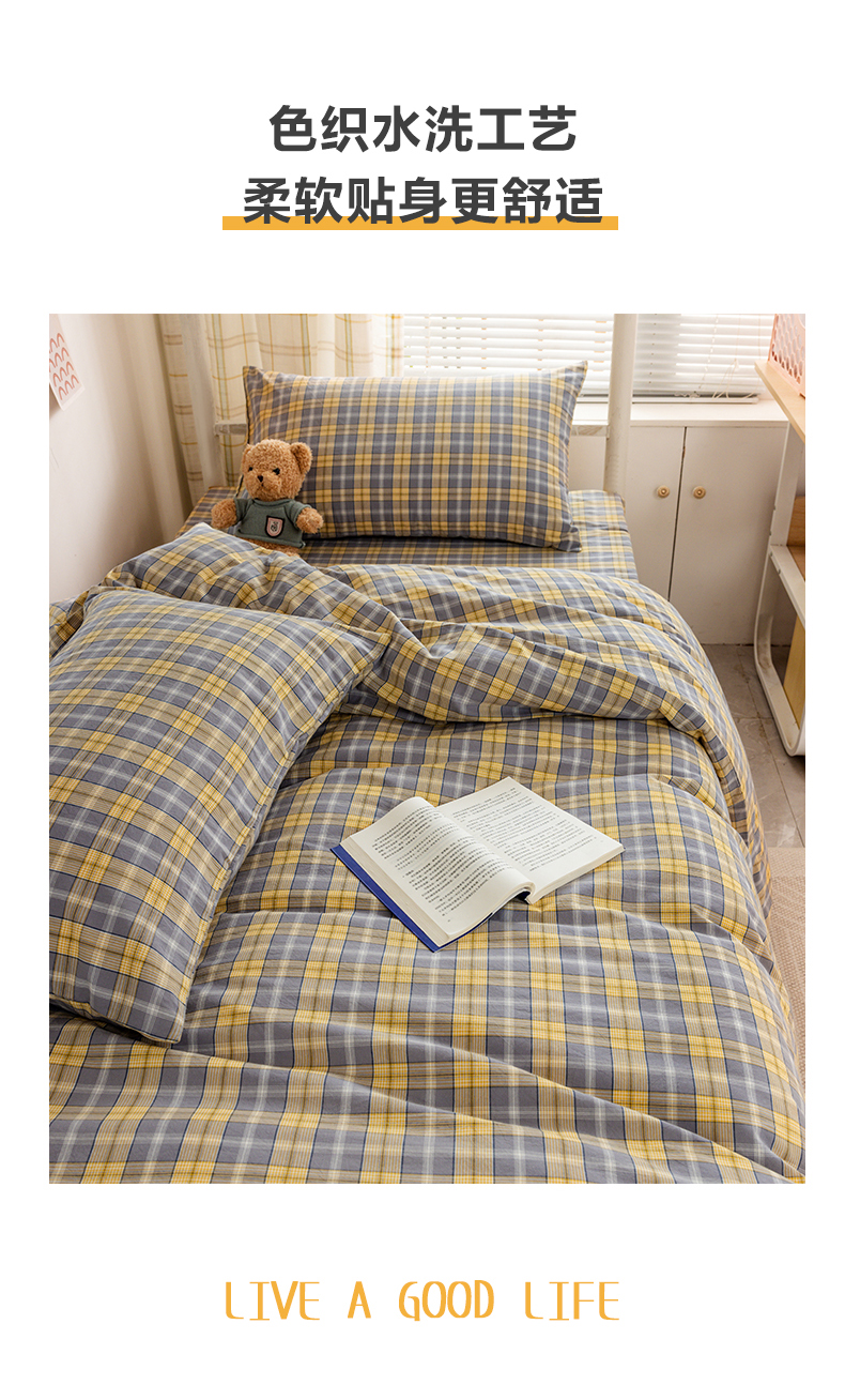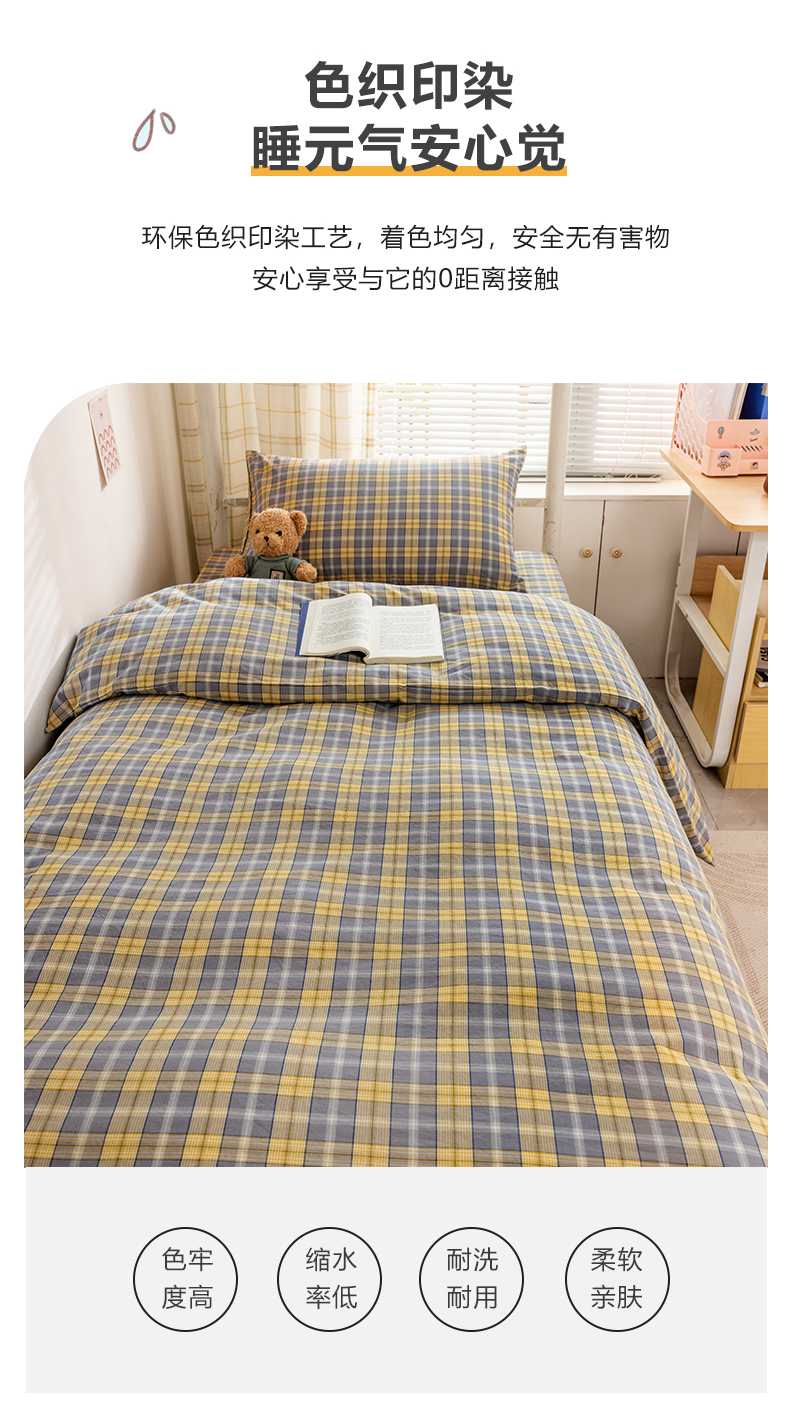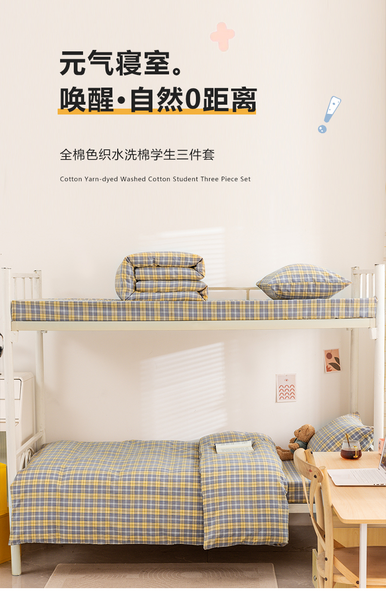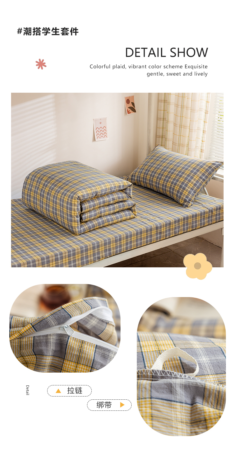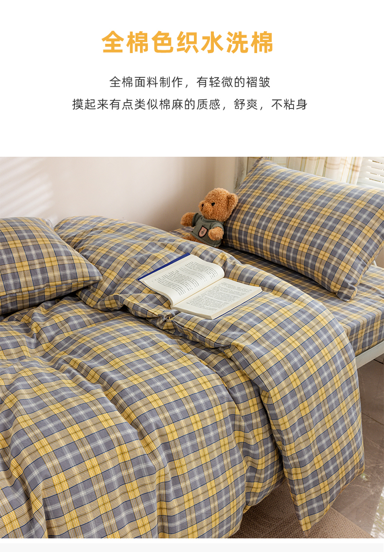 当前位置: 91家纺网 > 商品网购 > 床品套件 > 四件套 > 全棉普通四件套 > 柠萌家居 2025新品A类全棉色织水洗棉简约条纹格子无印良品风格学生季宿舍上下铺AA版三件套四件套 芳华灰
