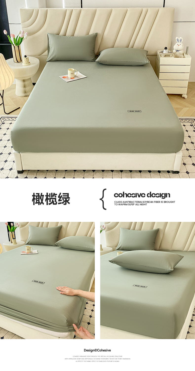 商品名称:寐眠 2024新款40支全棉刺绣床笠 橄榄绿