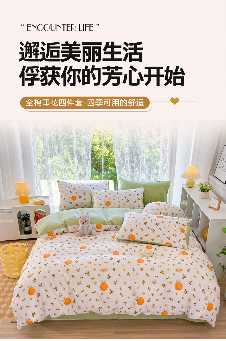 当前位置: 91家纺网 > 商品网购 > 床品套件 > 四件套 > 全棉普通四件套 > 世爵 2024新款12868全棉印花四件套水蜜桃