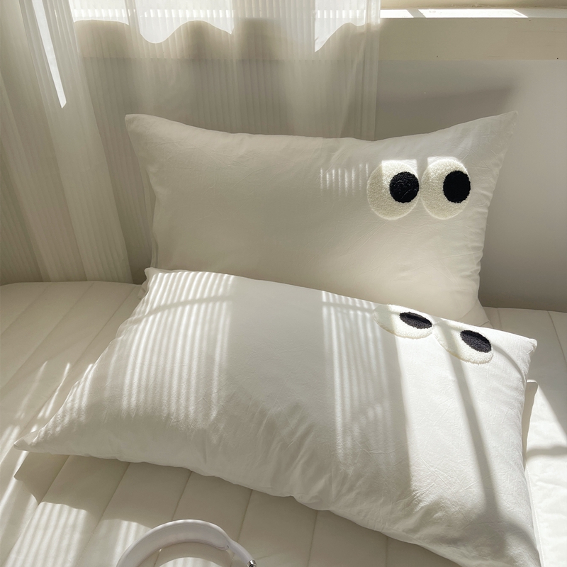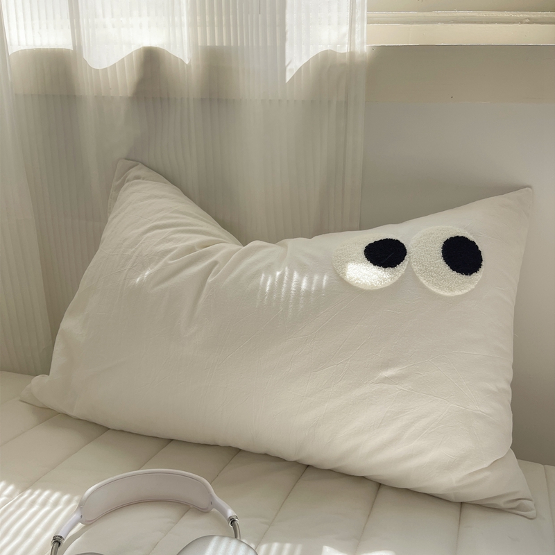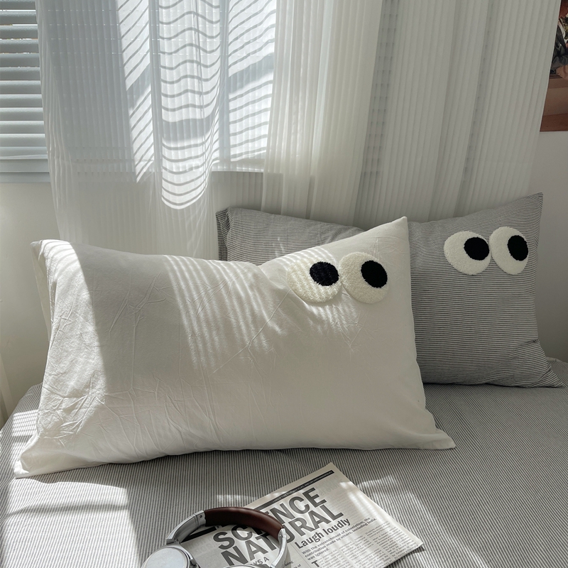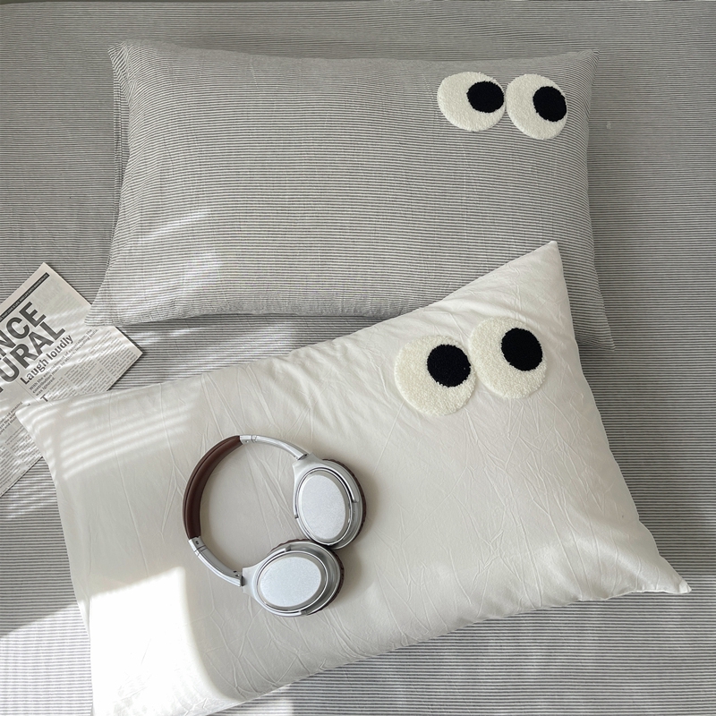 丽涵家纺 2024新款色织水洗棉大眼毛巾绣-单品枕套 大眼纯白