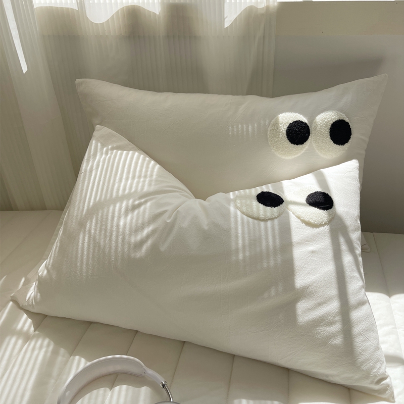 商品名称:丽涵家纺 2024新款色织水洗棉大眼毛巾绣-单品枕套 大眼纯白