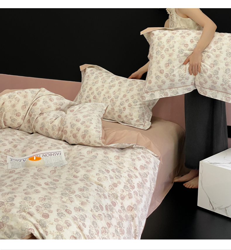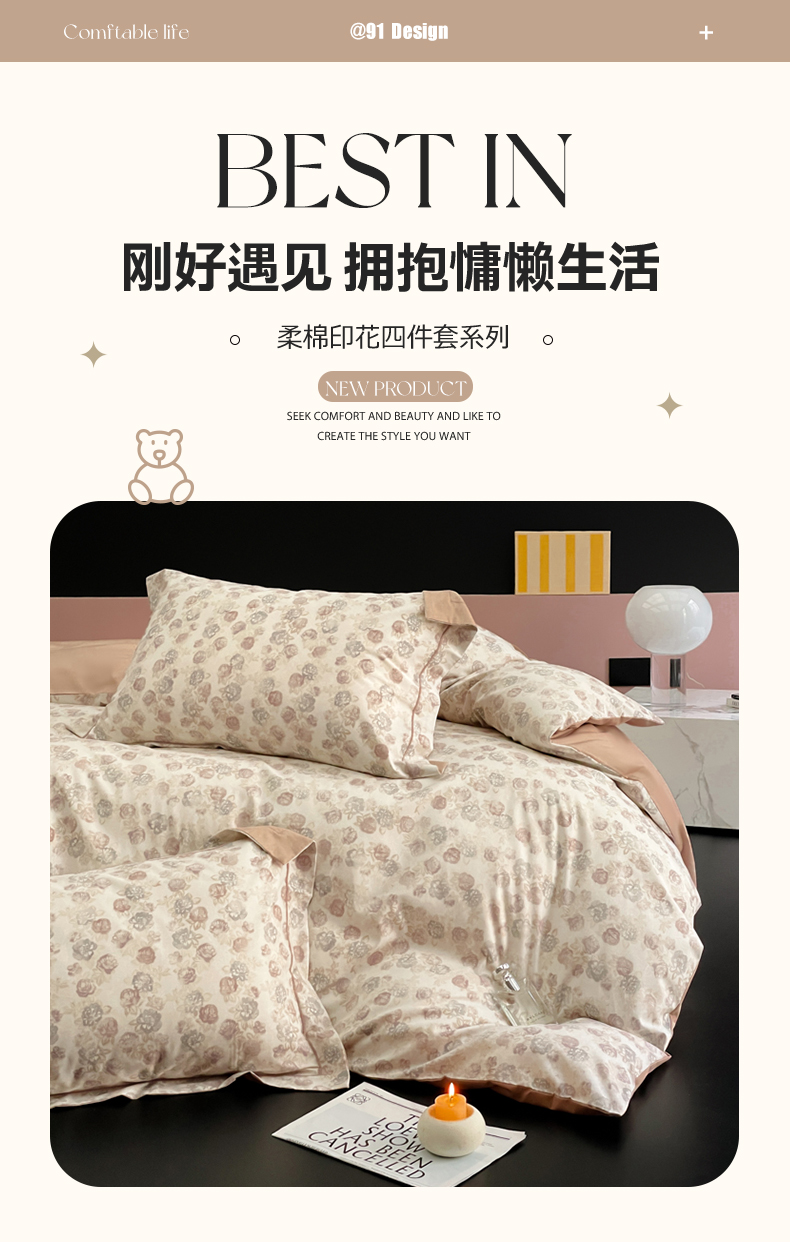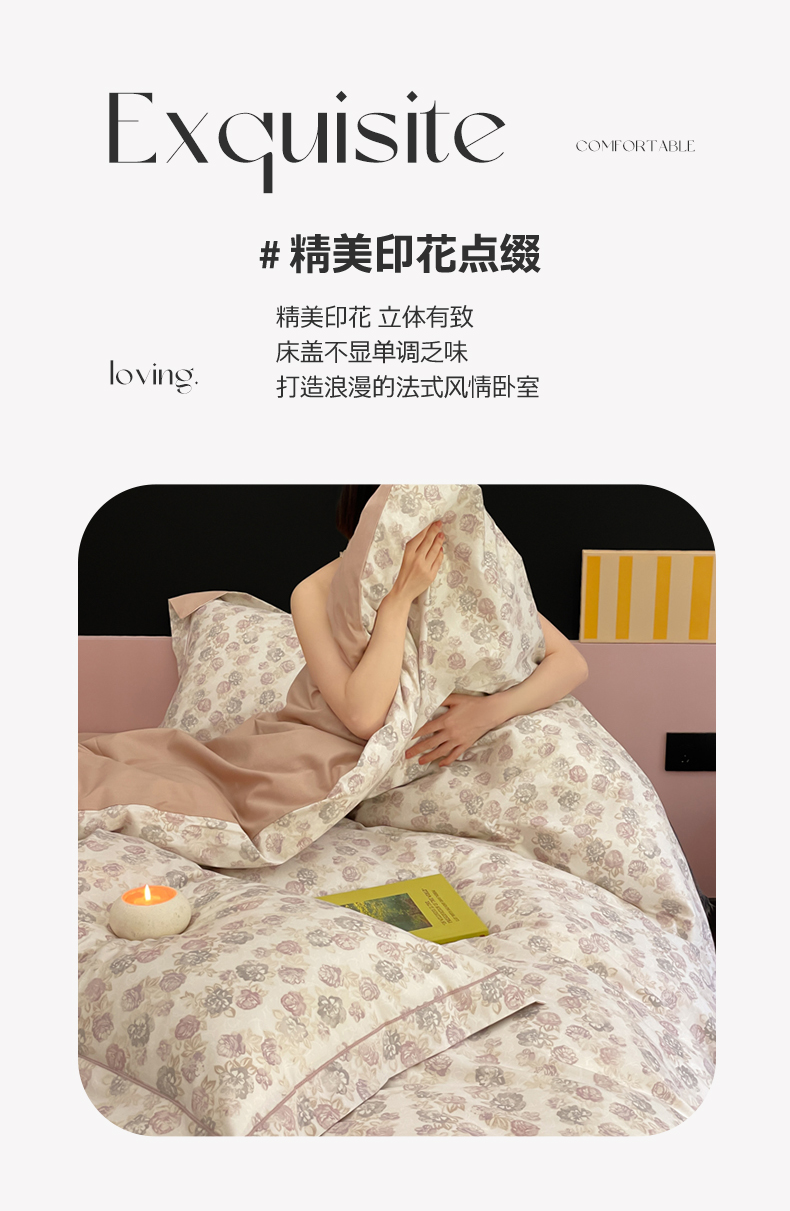(总)由丽家纺 2025新款亲肤舒适全棉纯棉臻棉数码印花四件套系列,繁花似锦,感棉-粉,金溪-灰,金溪-咖,茂林-兰,明羽-黄,沐恩-绿,野玫瑰-紫,感棉-绿,玫瑰颂-粉