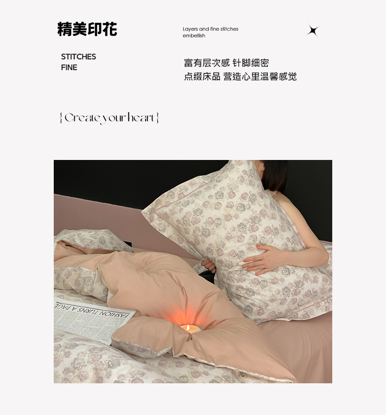 (总)由丽家纺 2025新款双层拼角数码印花四件套 控价券后399起,悦盈-粉,悦盈-灰
