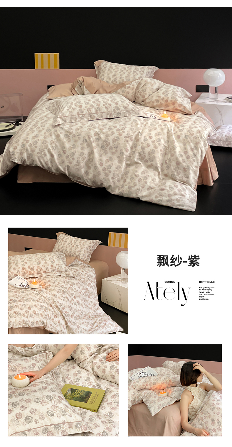 商品名称:由丽家纺 2025新款柔棉印花四件套系列 飘纱-紫