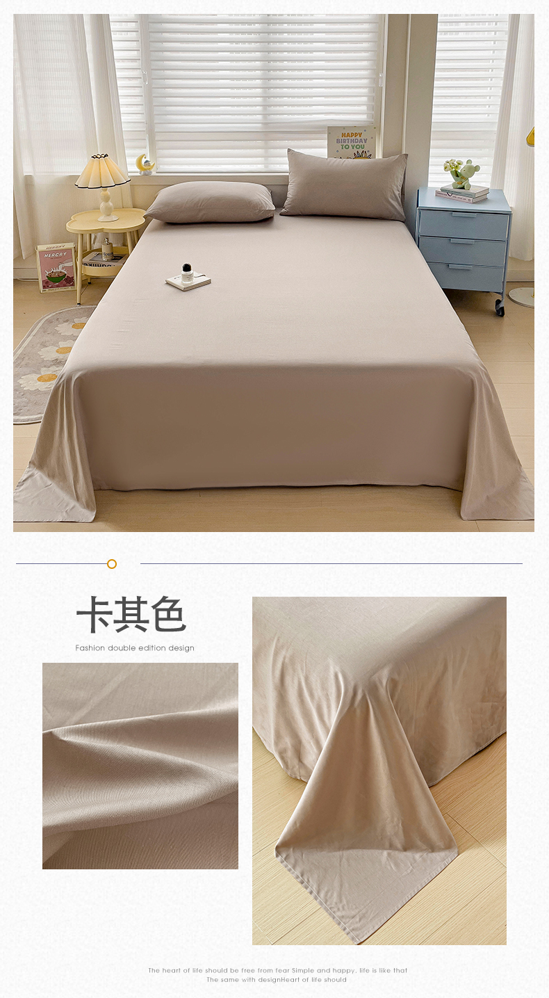 2024新款全棉简约纯色床单 卡其色