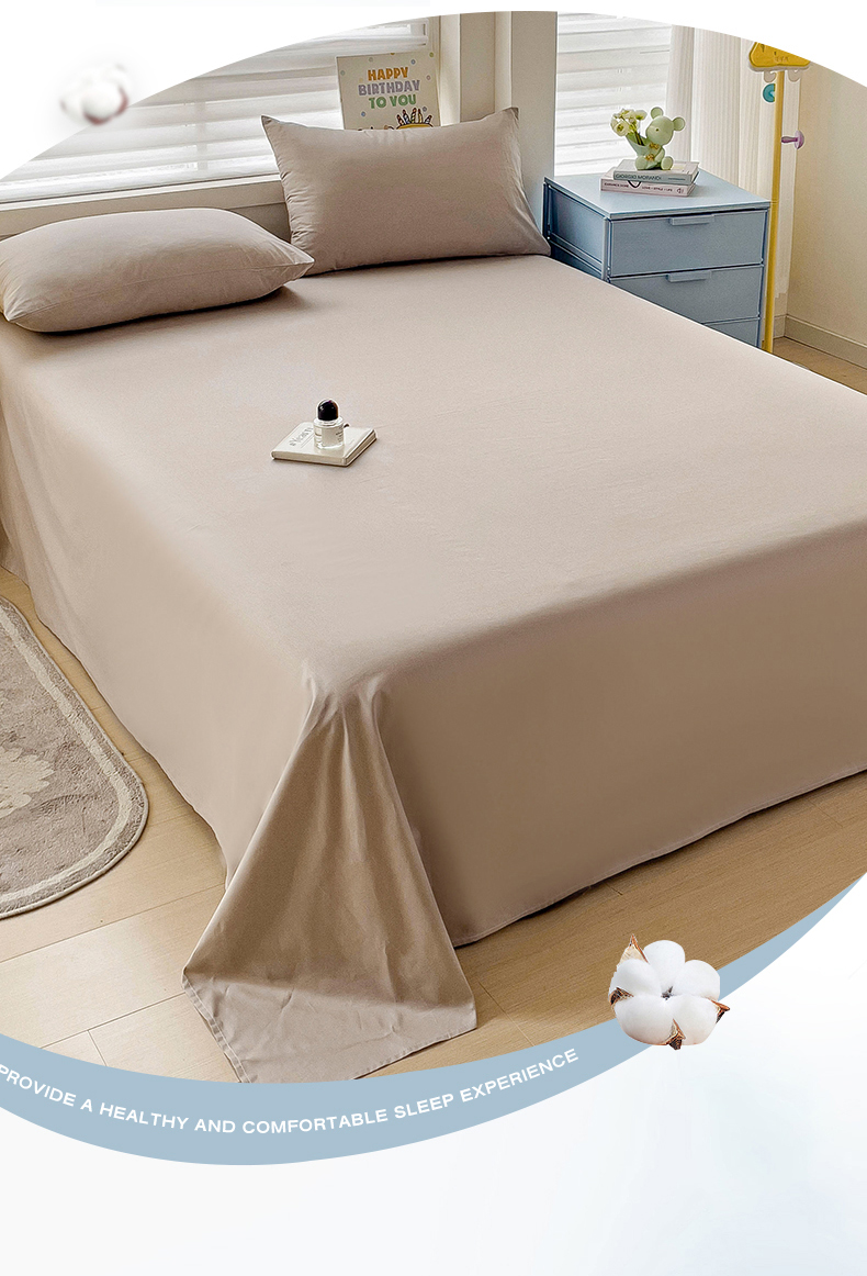• 91家纺网 家纺一手货源 找家纺 2024新款全棉简约纯色床单 卡其色