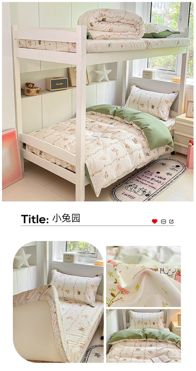 当前位置: 91家纺网 > 商品网购 > 床品套件 > 三件套 > 2024新款全棉印花三件套学生宿舍床三件套上下铺床单被套 小兔园