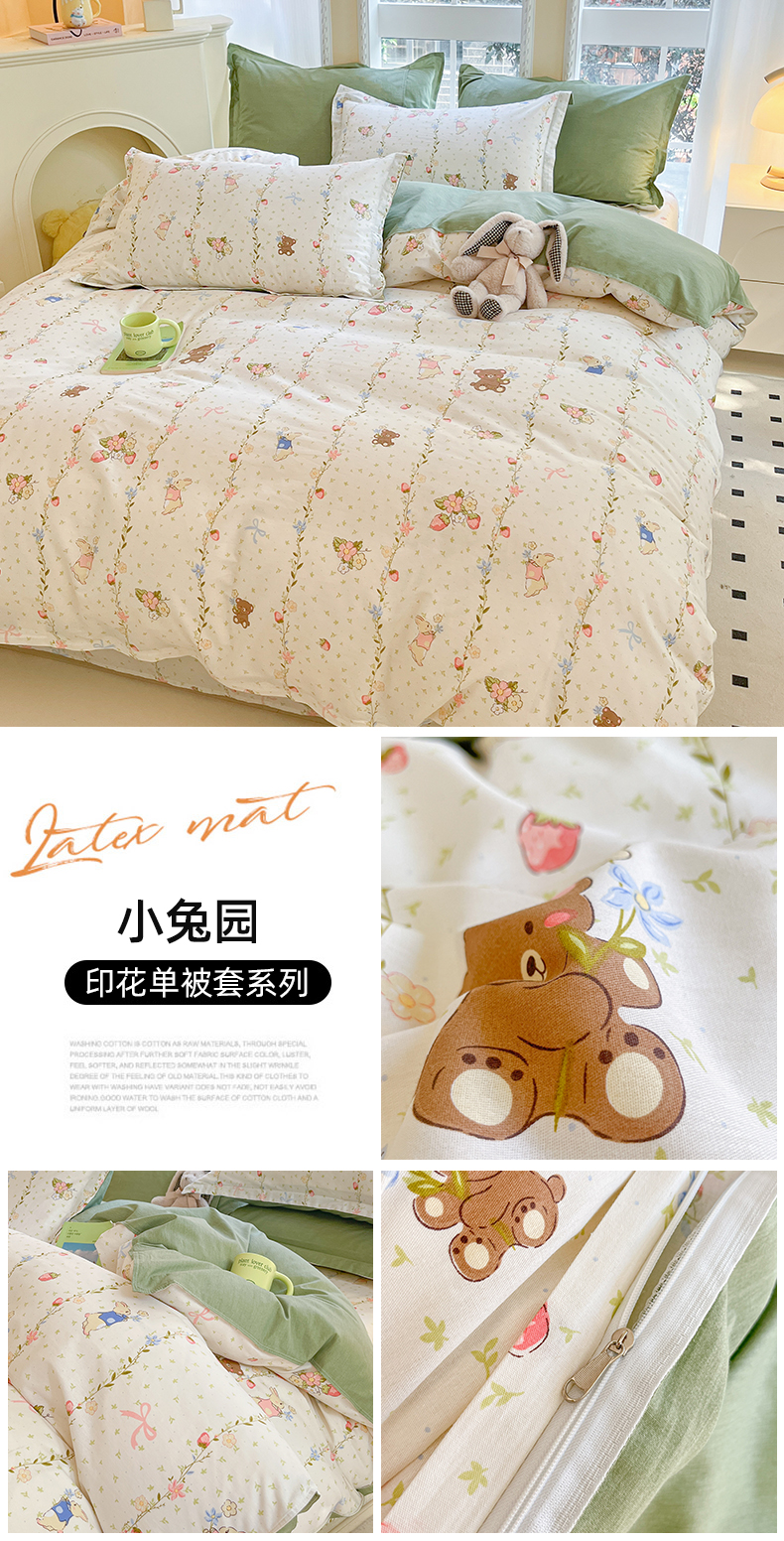 商品名称:铭成家纺 2024新款新疆棉喷气印花小清新系列单被套小兔园