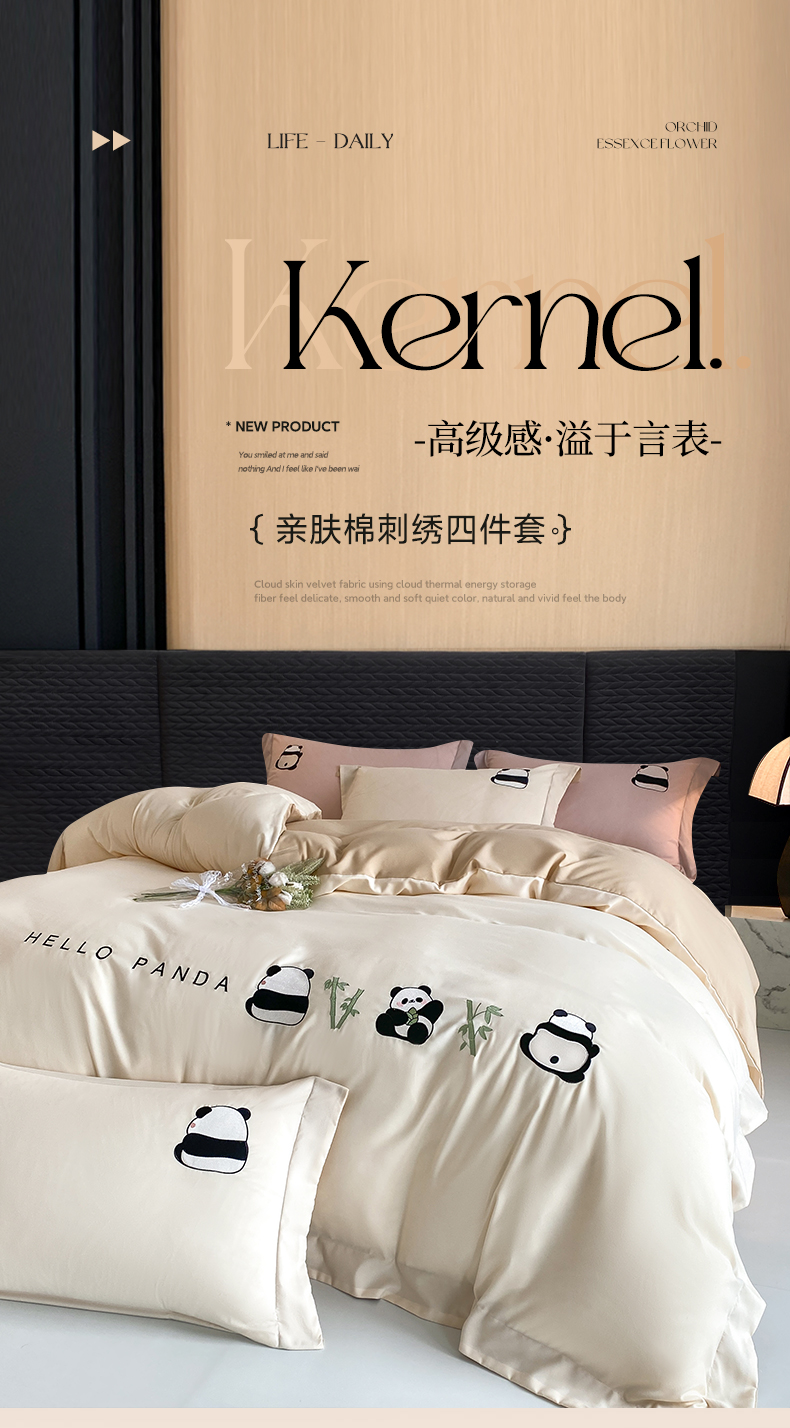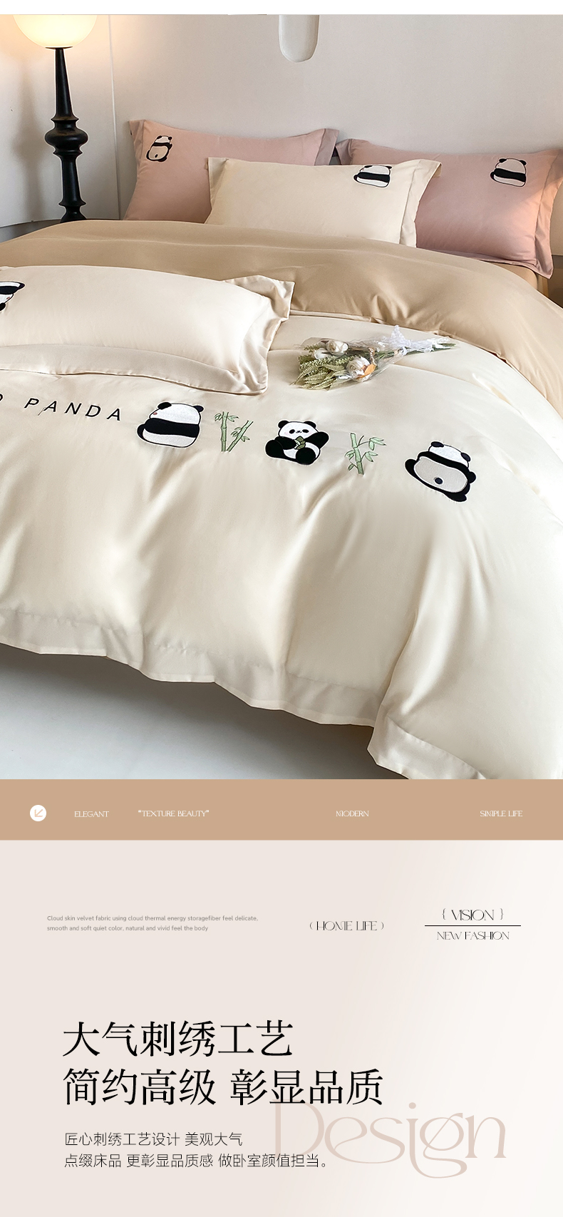 当前位置: 91家纺网 > 商品网购 > 床品套件 > 四件套 > 普通磨毛四件套 > 青柚 2024新款亲肤棉磨毛刺绣四件套-熊猫 熊猫-浅咖