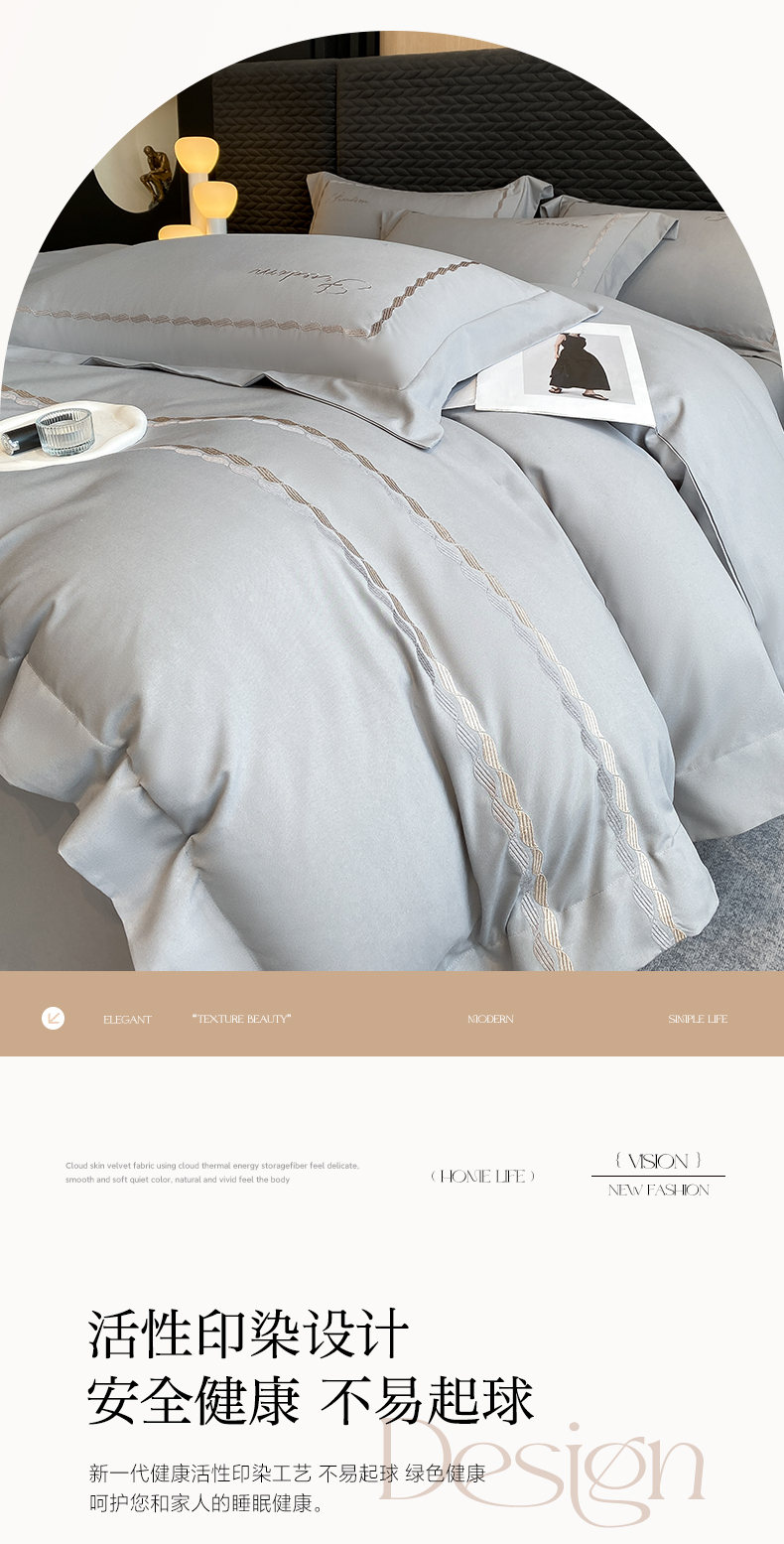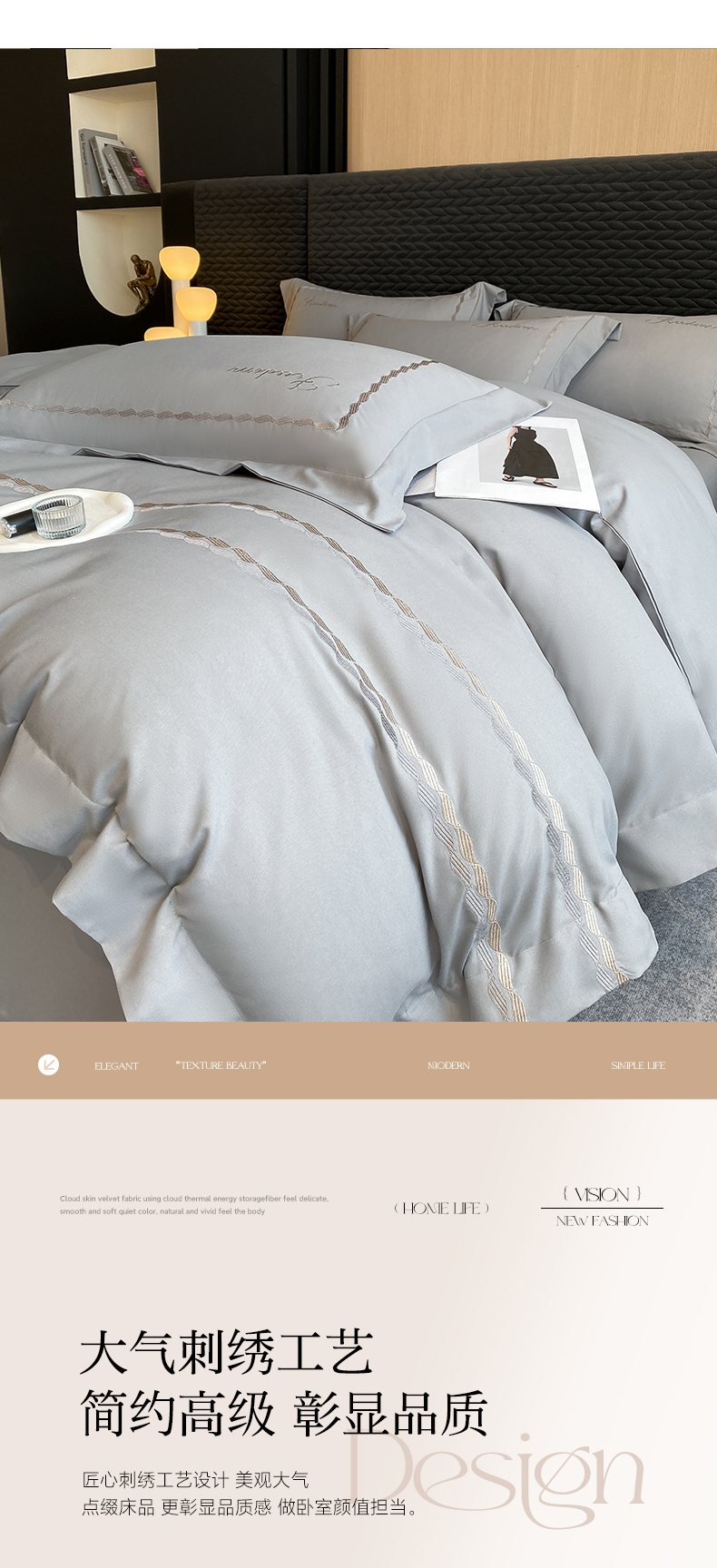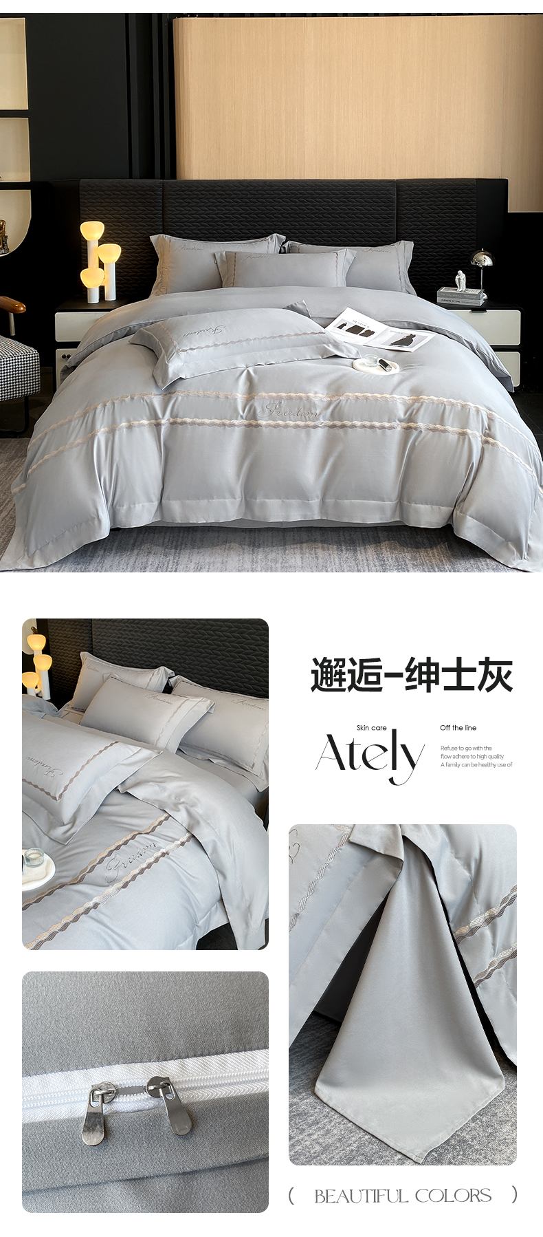 当前位置: 91家纺网 > 商品网购 > 床品套件 > 四件套 > 普通磨毛四件套 > 青柚 2024新款亲肤棉磨毛轻奢刺绣四件套-邂逅 邂逅-绅士灰