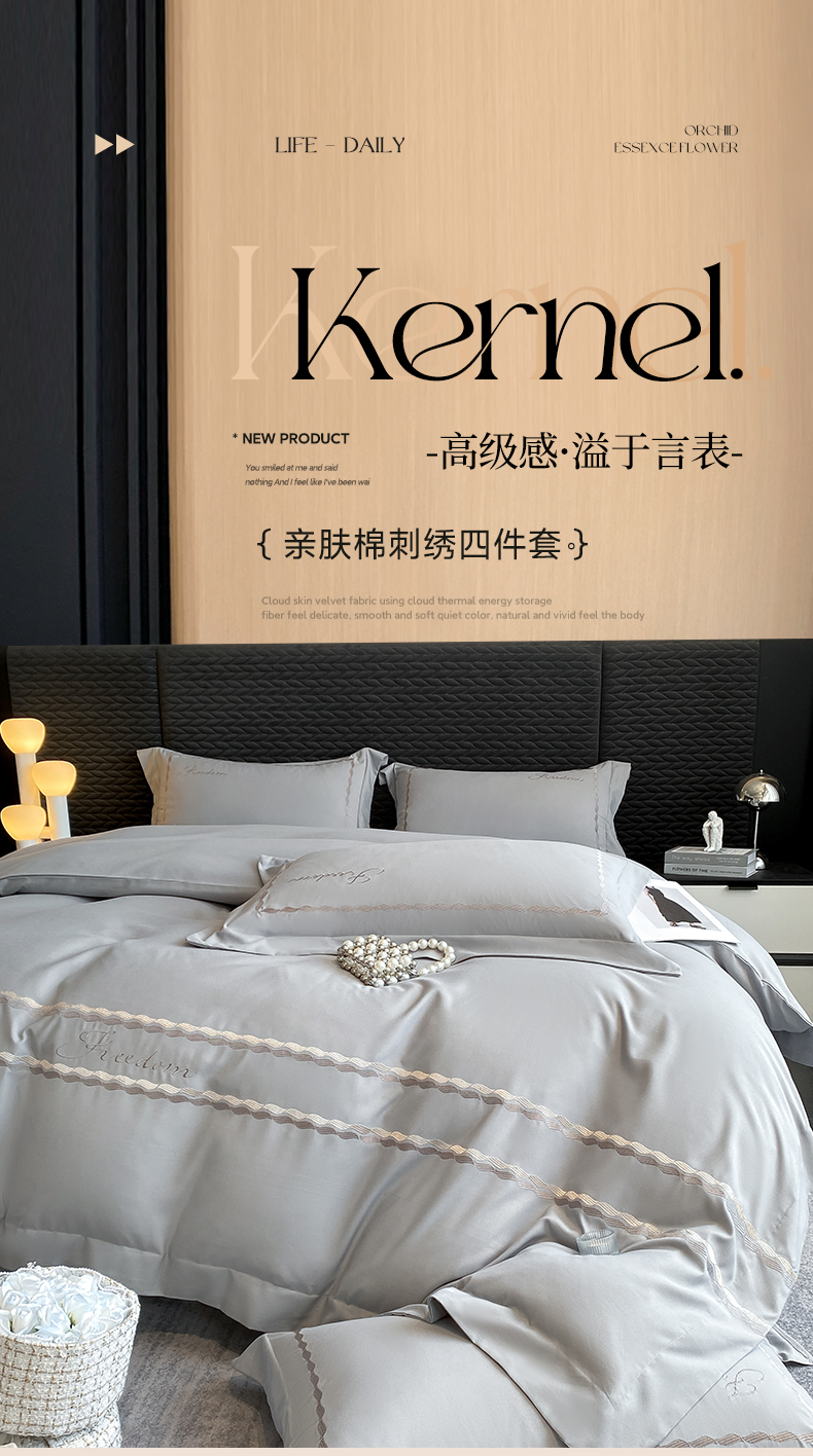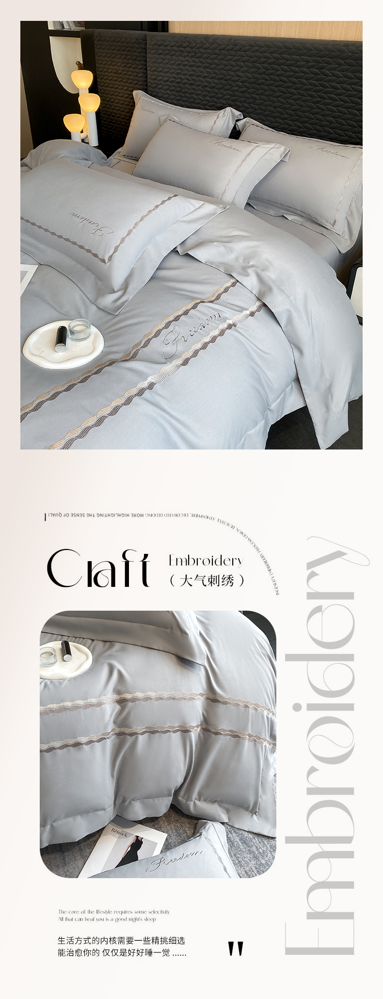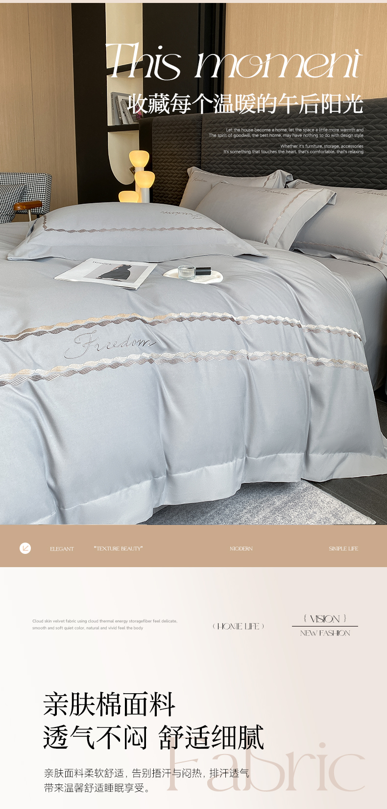 当前位置: 91家纺网 > 商品网购 > 床品套件 > 四件套 > 普通磨毛四件套 > 青柚 2024新款亲肤棉磨毛轻奢刺绣四件套-邂逅 邂逅-绅士灰