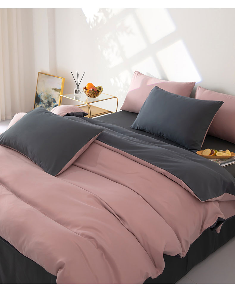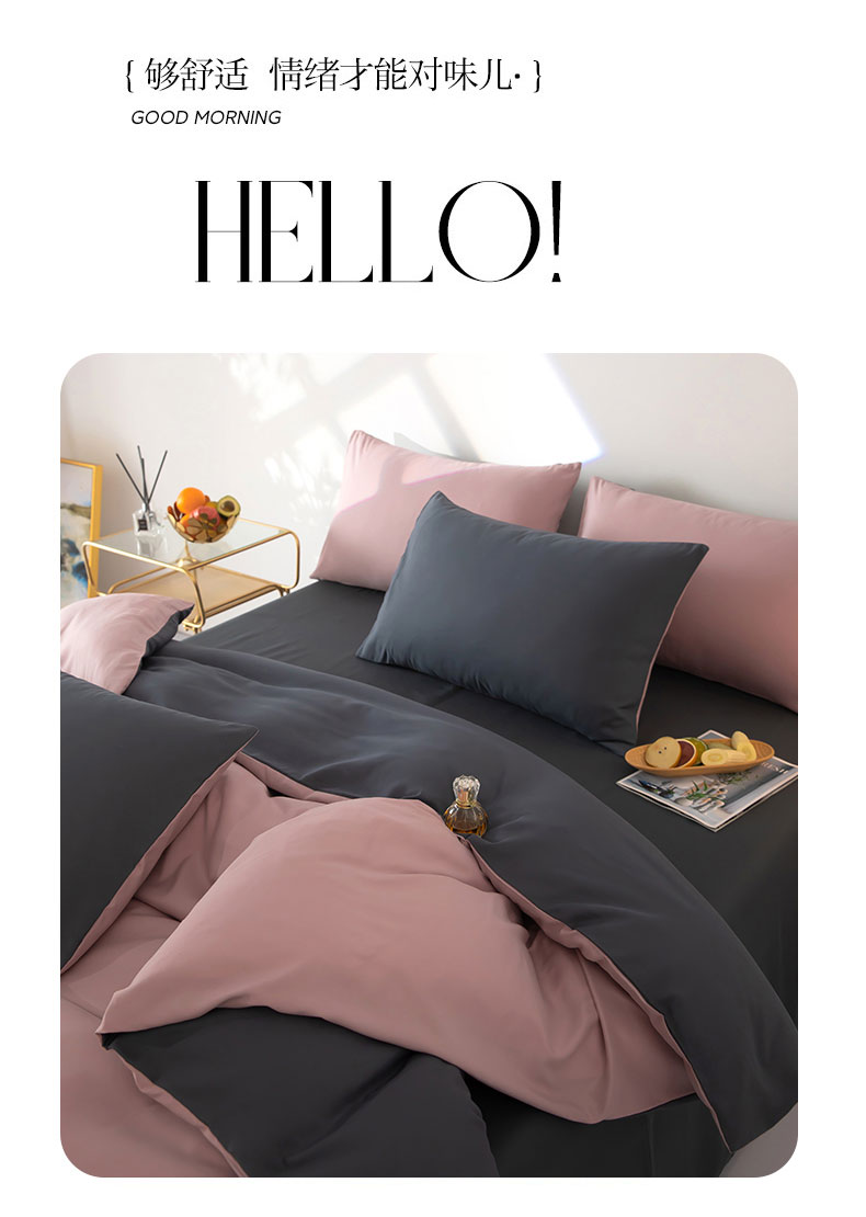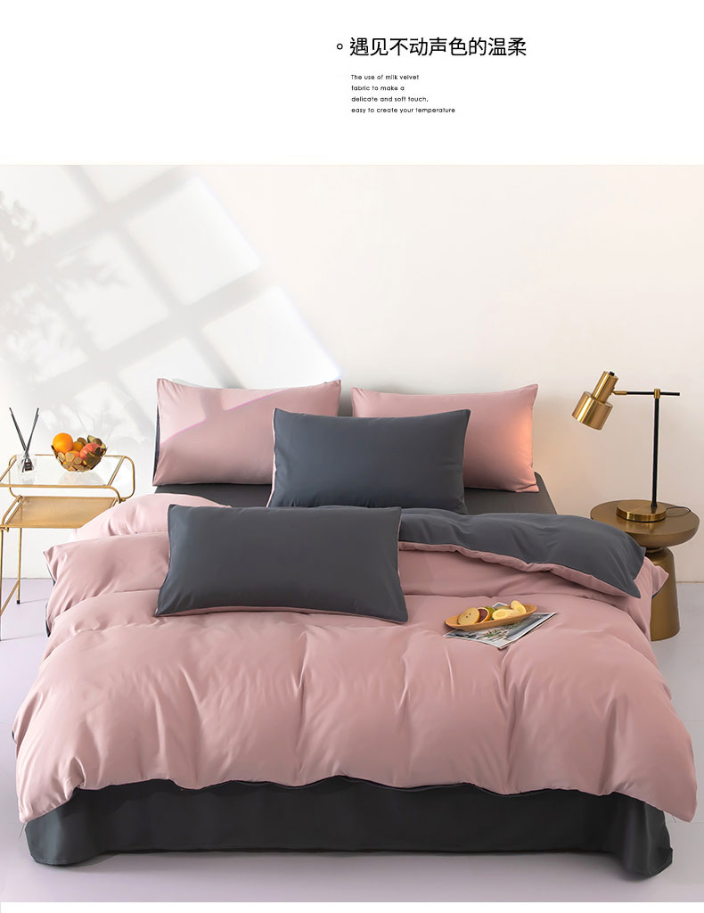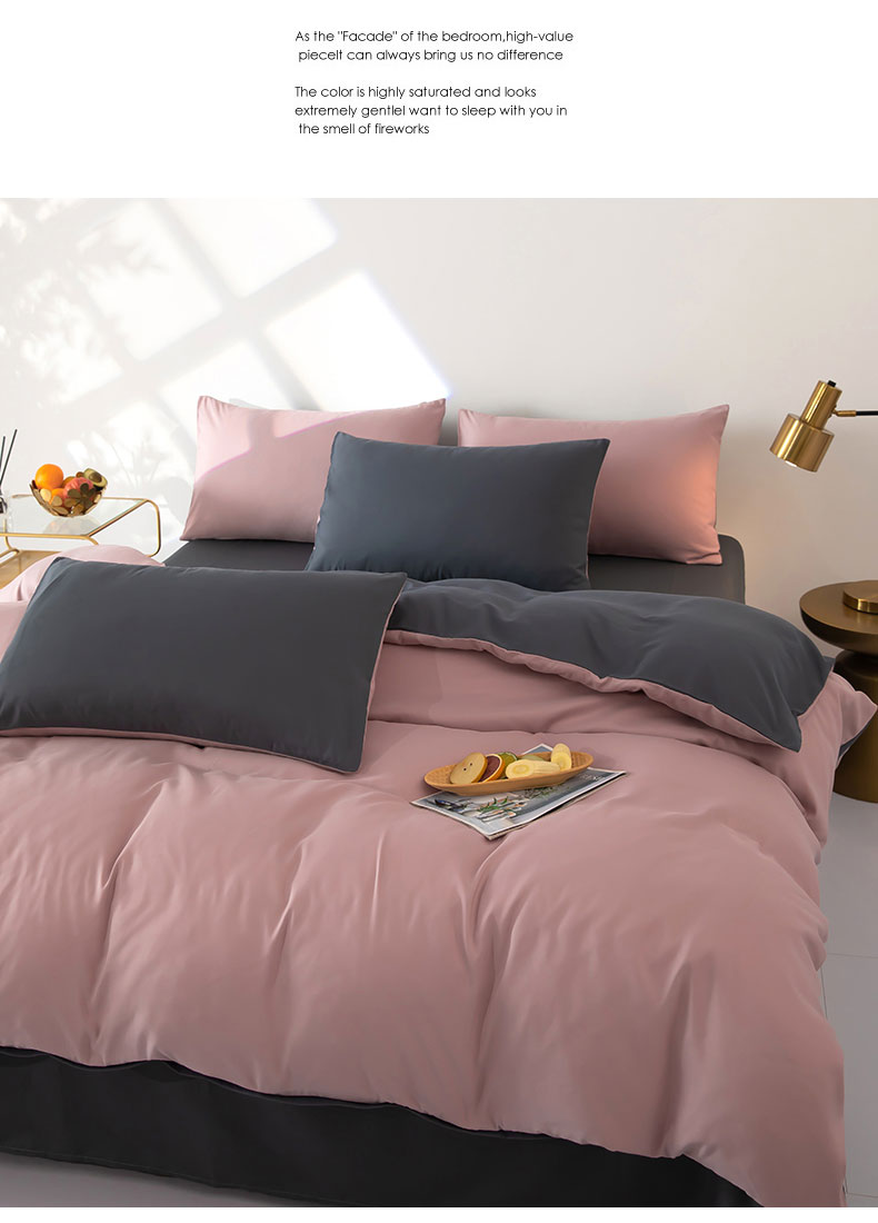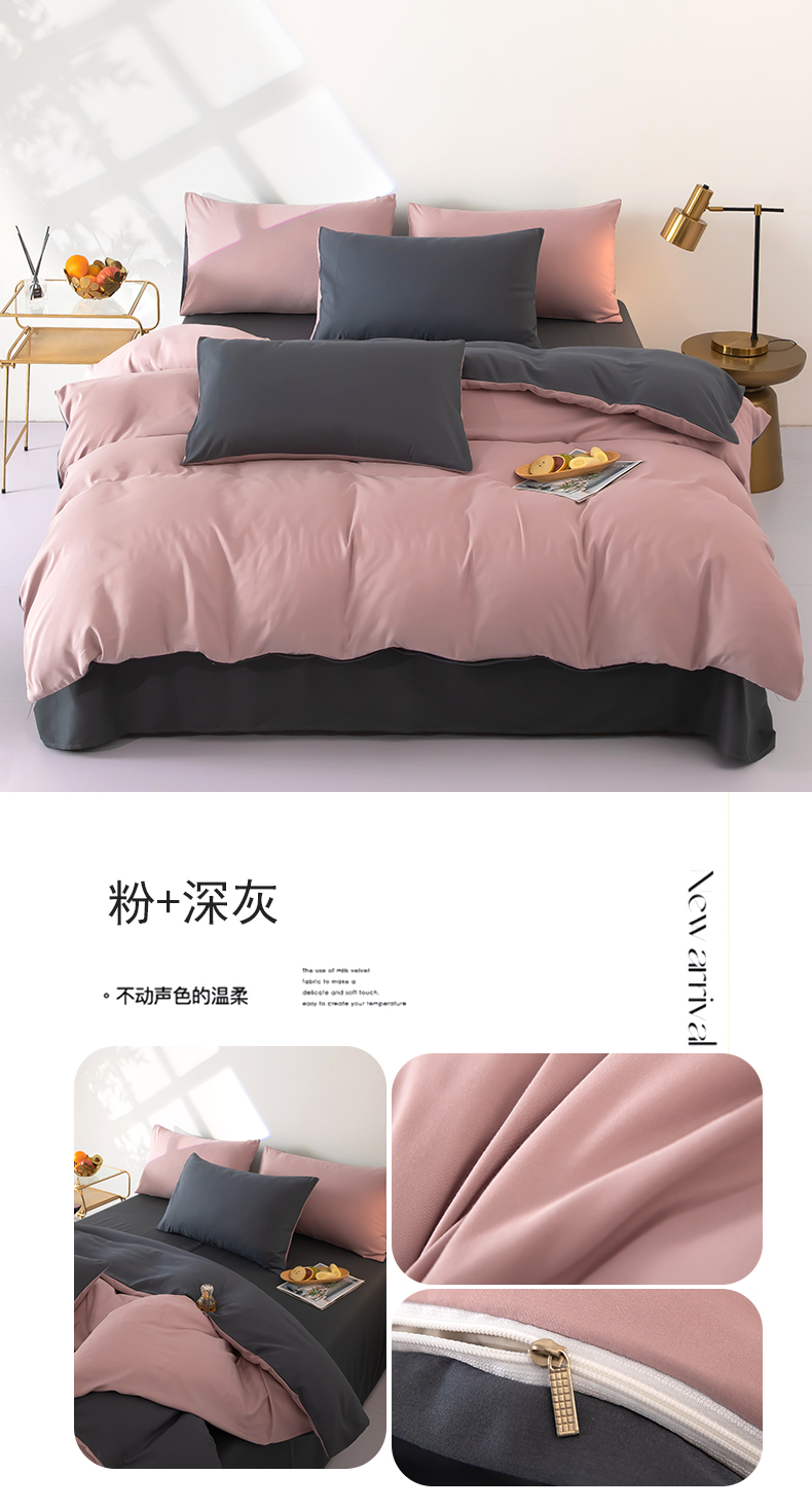 商品名称:梦莱家纺 2024新款亲肤磨毛纯色拼色轻奢系列四件套 粉+深灰