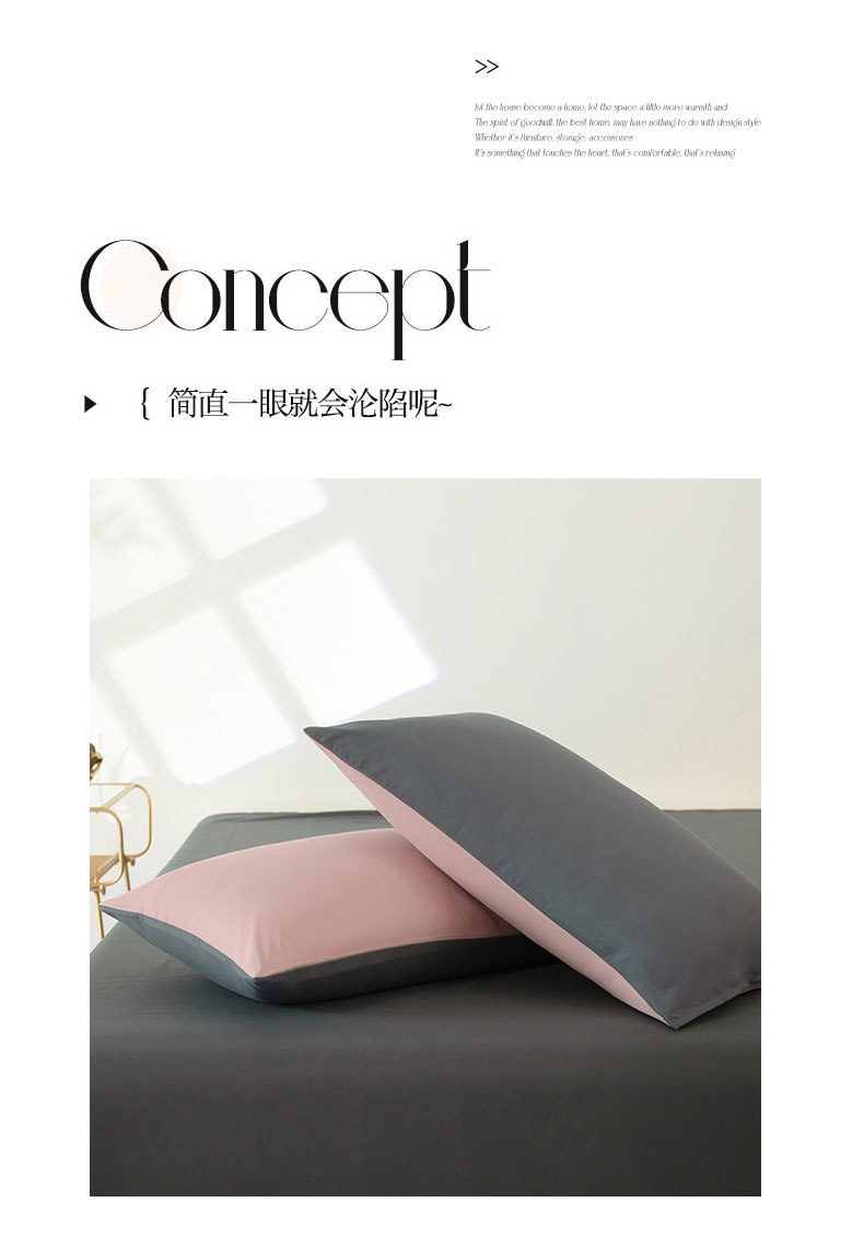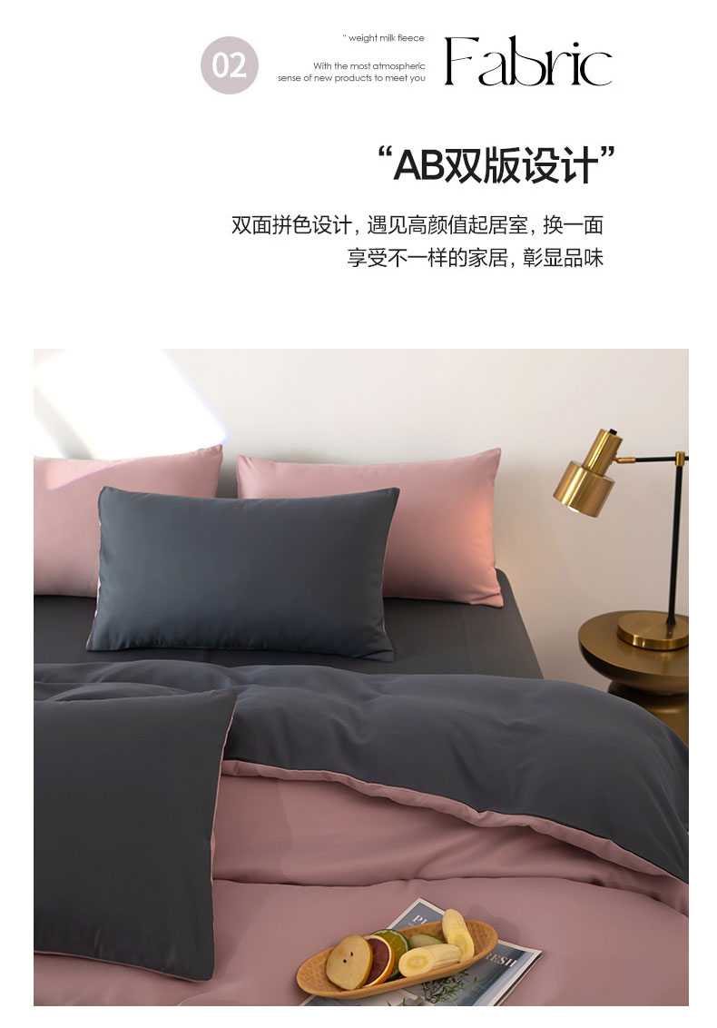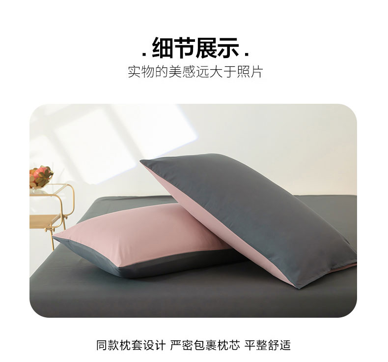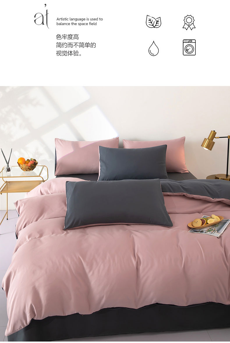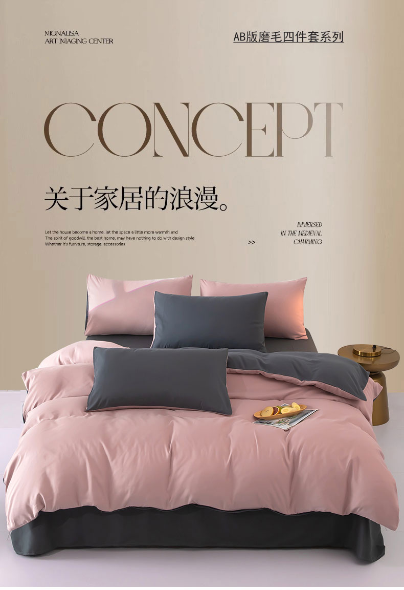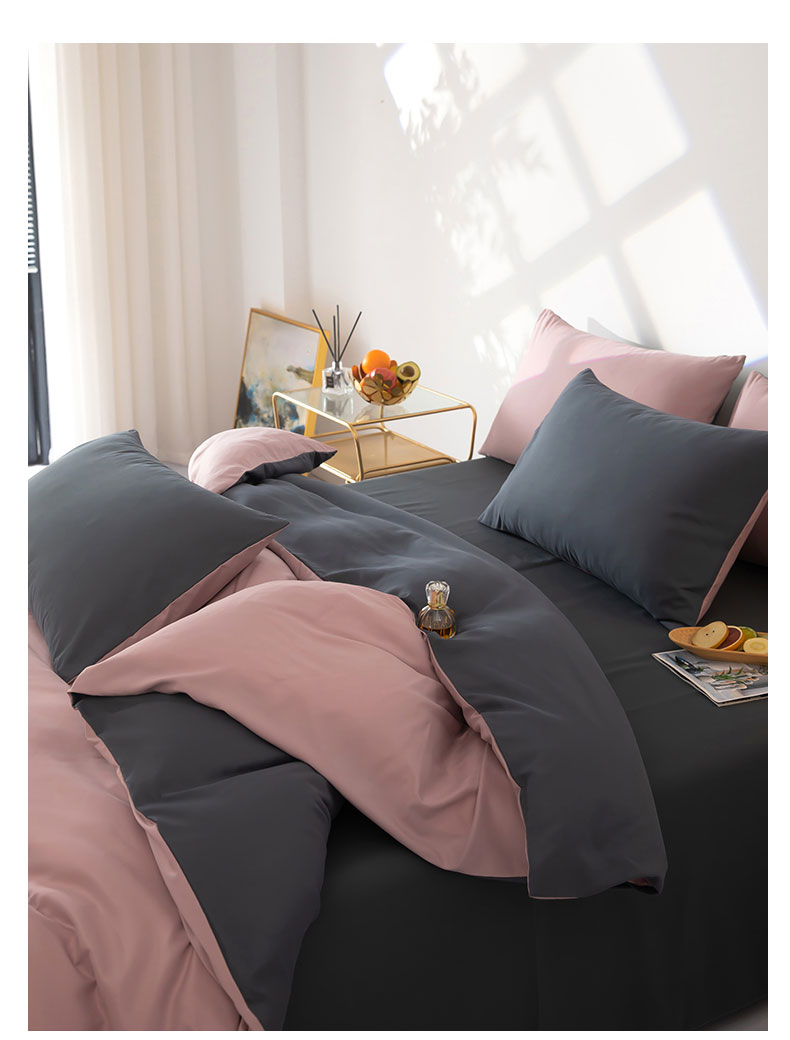 商品名称:梦莱家纺 2024新款亲肤磨毛纯色拼色轻奢系列四件套 粉+深灰