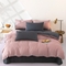 梦莱家纺 2024新款亲肤磨毛纯色拼色轻奢系列四件套 粉+深灰