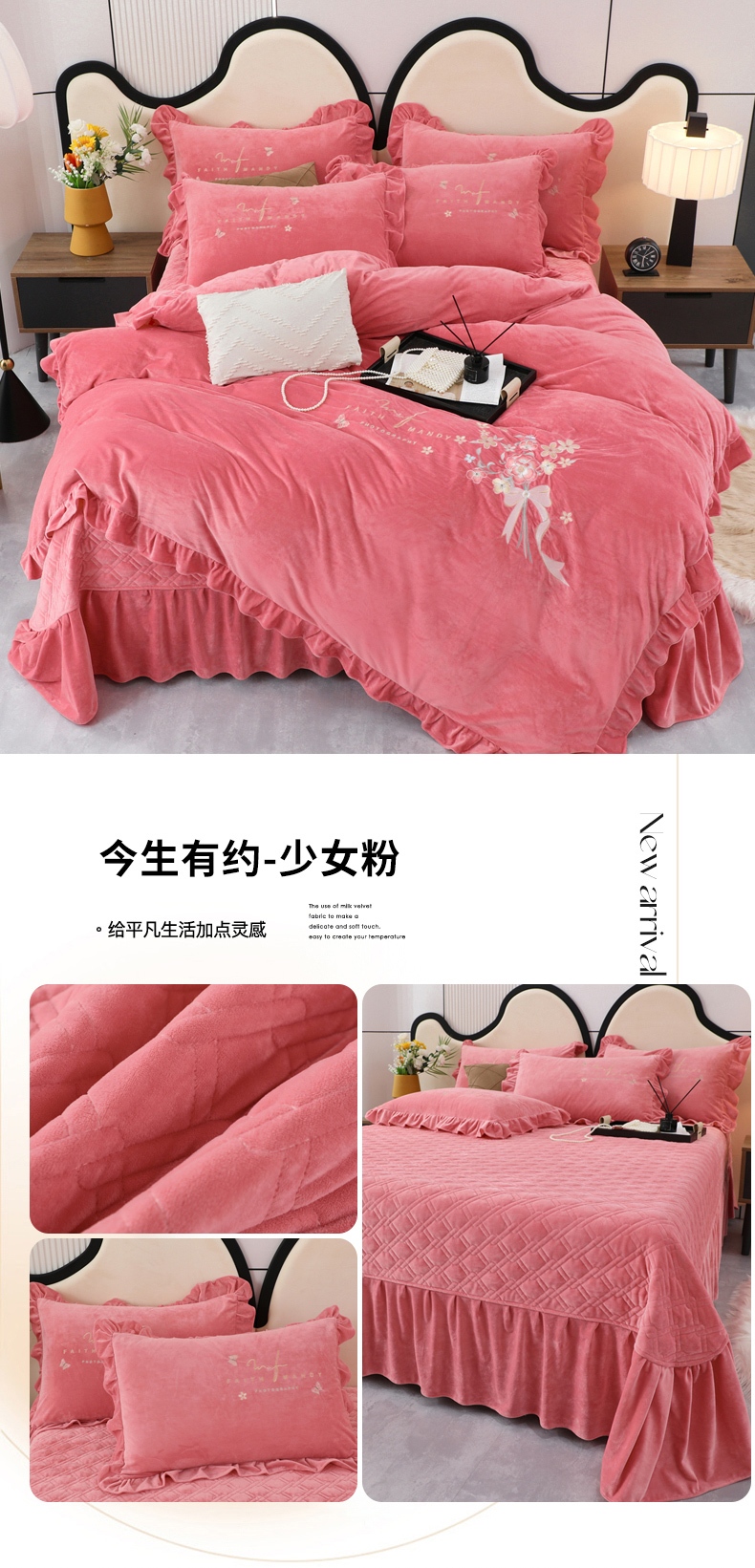 商品名称:优姿家纺 2024新品宝宝绒11斤夹棉床盖保暖四件套 今生有约-少女粉