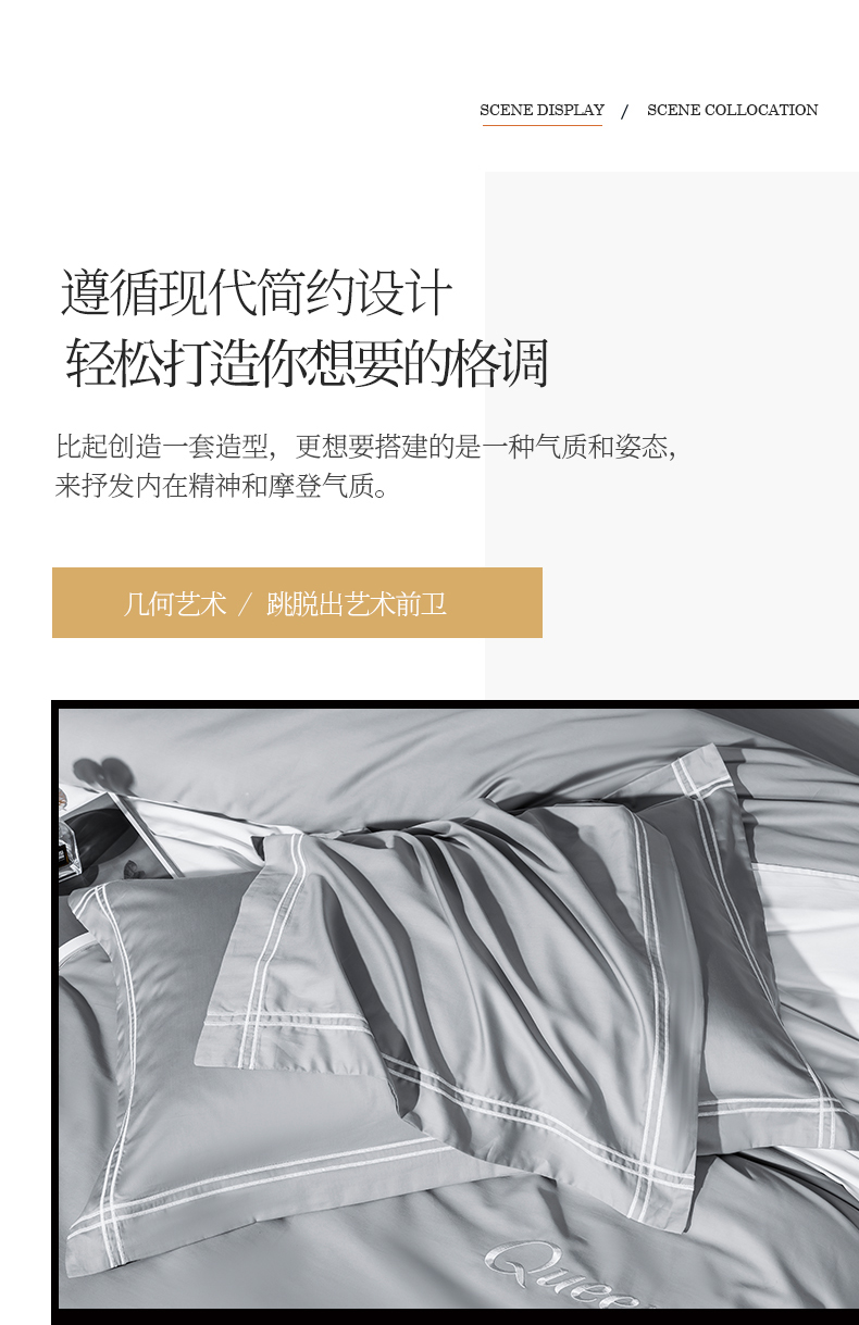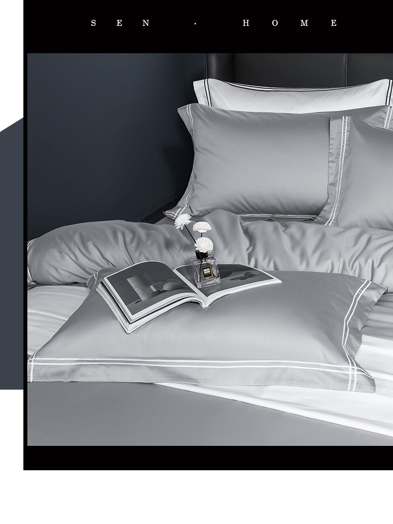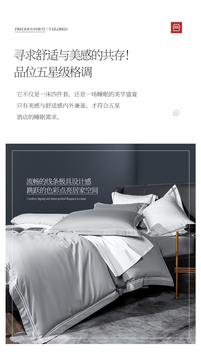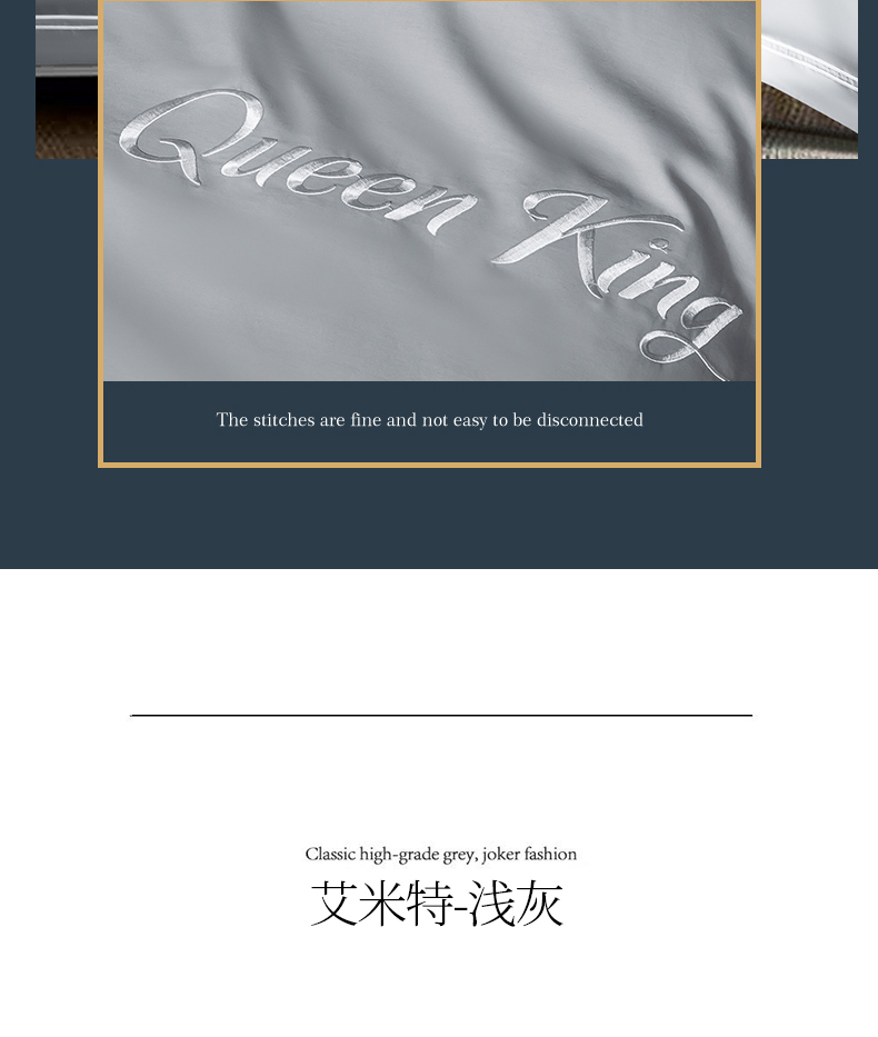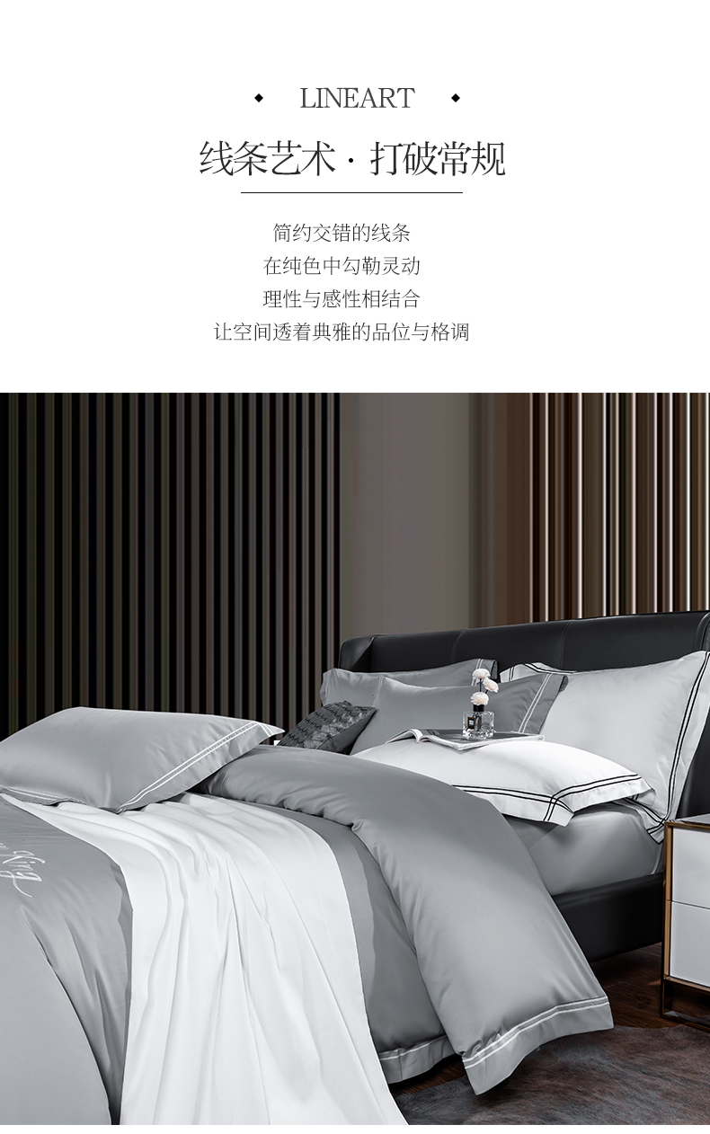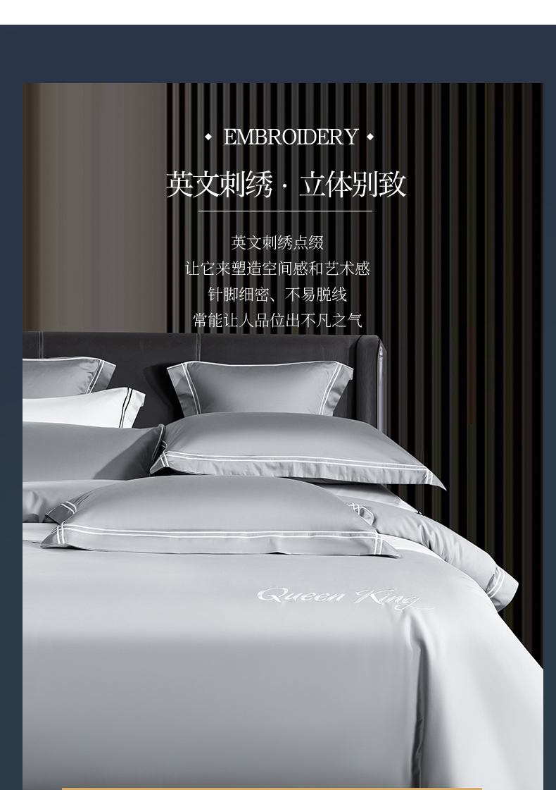 商品名称:蓝米卡夫 2024新款A类100支全棉刺绣艾米特系列四件套(礼盒包装) 艾米特-浅灰