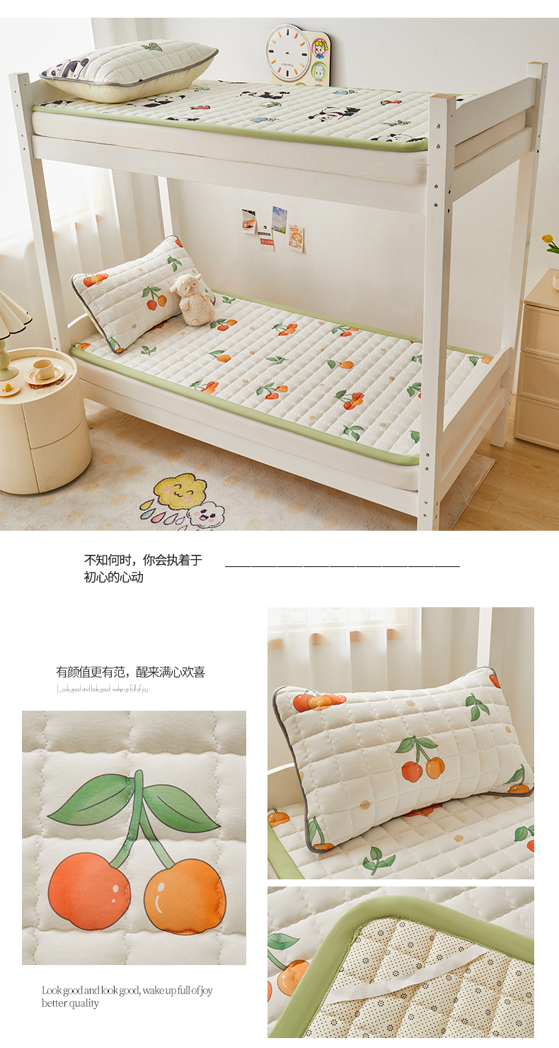 商品名称:花言狐语 2025新款水洗棉加厚夹棉防滑床褥子(印花系列)-学生单人床 樱桃