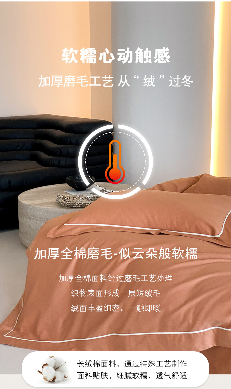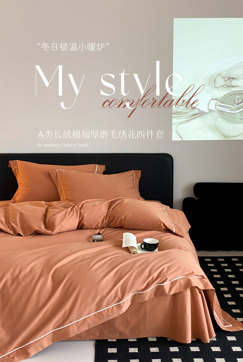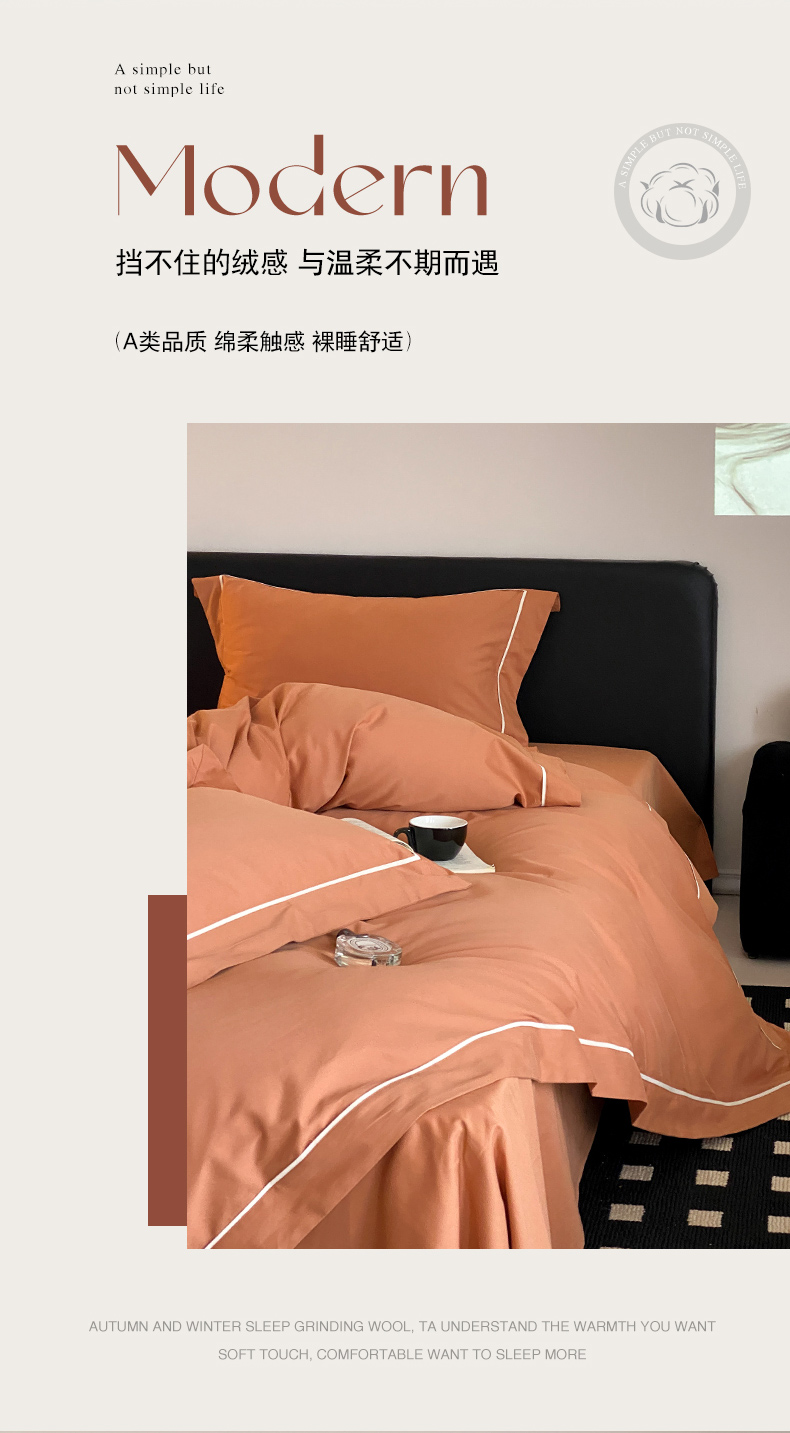 商品名称:云栖家居 2024A类全棉磨毛静谧系列四件套 静谧-赤缇