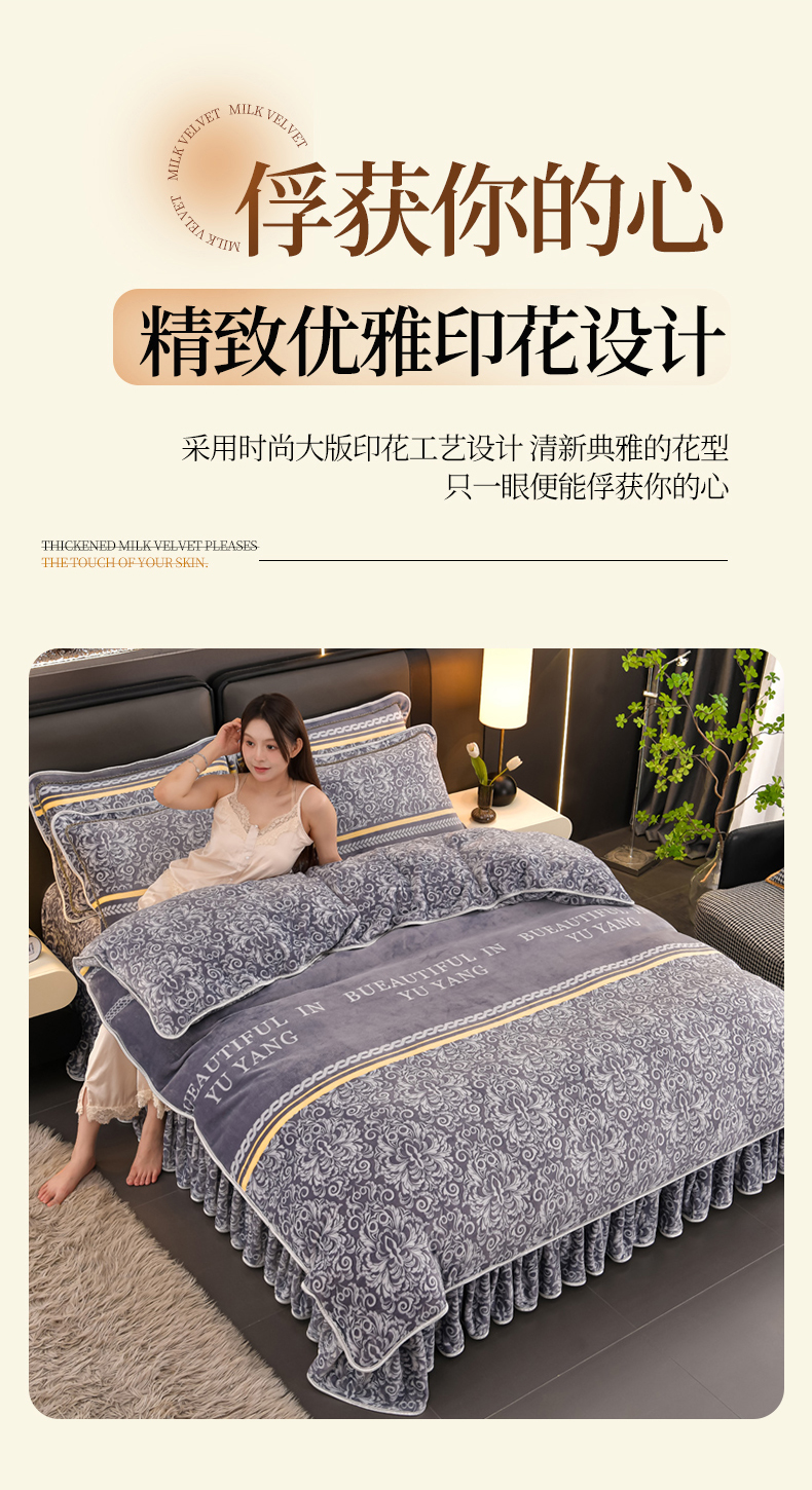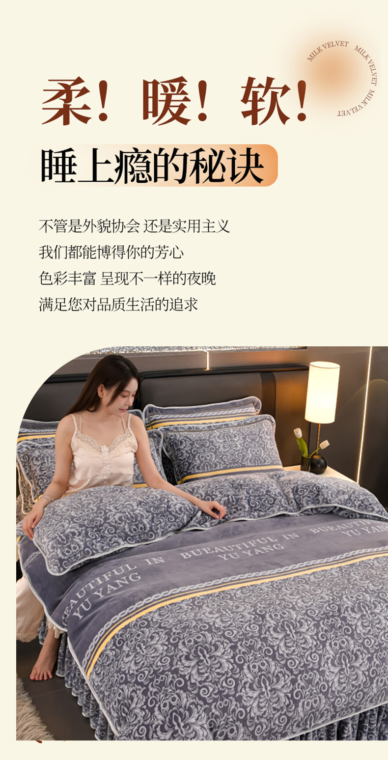 商品名称:雨洋2025新款加厚保暖8.5斤牛奶绒金貂婴儿绒四件套 都市生活