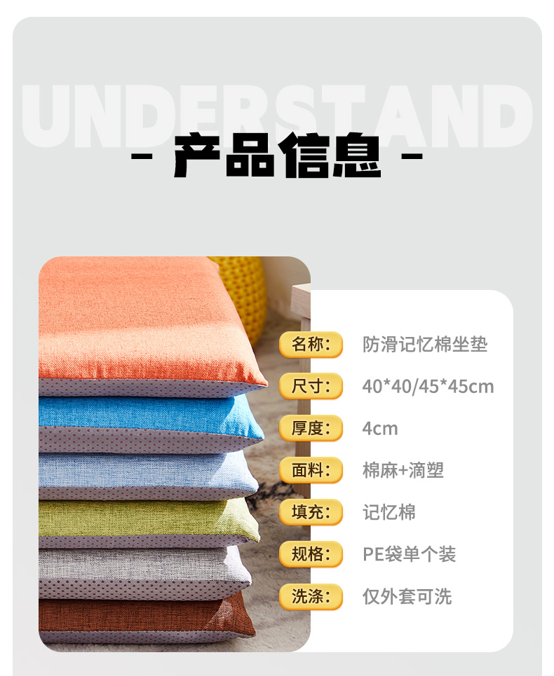 商品名称:囍莱家纺 2024新款防滑记忆棉坐垫ZD-C027 升级版-橙红色
