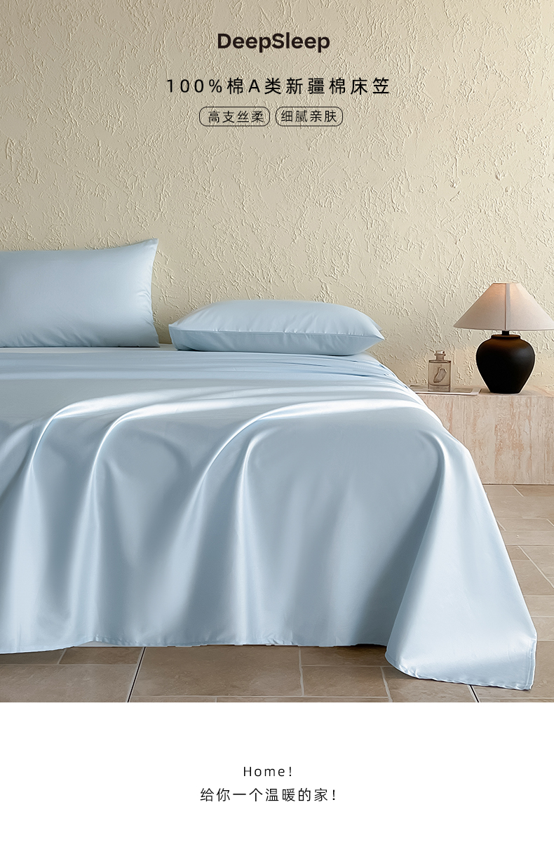床上用品 > 床单 > Mr.pig猪先生水洗棉 2024新品 A类全棉50S贡缎长绒棉单床笠床罩纯棉床垫保护套学生宿舍三件套床上用品 蒂蓝