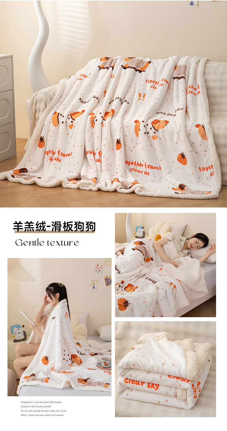 雅萱家纺 2024新款羊羔绒+牛奶绒毛毯披肩毯盖毯 羊羔绒-滑板狗狗