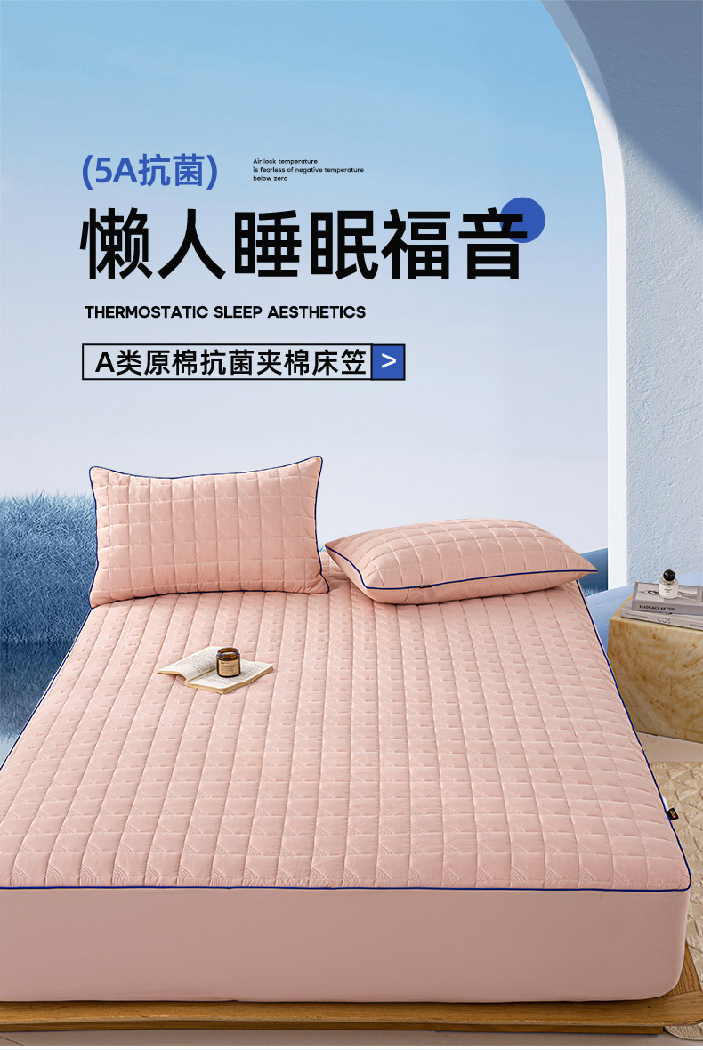 • 91家纺网 家纺一手货源 找家纺 (总)好眠好梦家纺 2025新款全棉50S夹棉抗菌防螨床笠-棉生活系列,白色,粉色,卡其,深灰,天蓝,烟灰