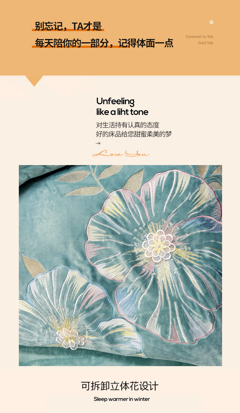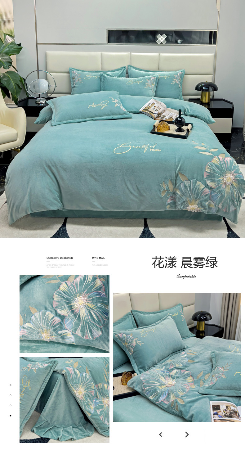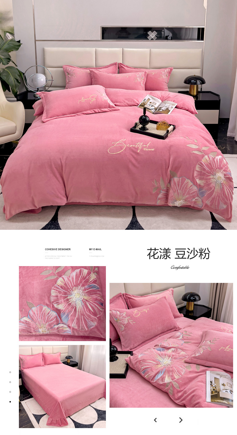 商品名称:(总)星尚家纺 2024新款全消光230g牛奶绒刺绣保暖四件套-花漾