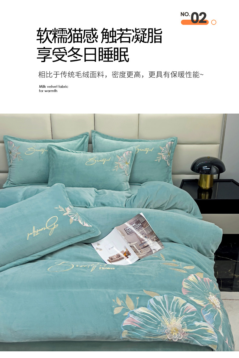 (总)星尚家纺 2024新款保暖全消光A类230g牛奶绒绣花绒四件套-曼妙花园,豆沙粉,孔雀蓝,清新绿,绅士灰,香芋紫,樱花粉