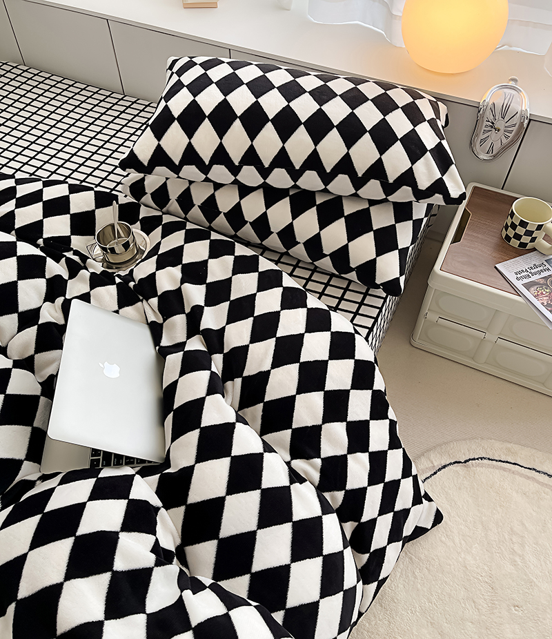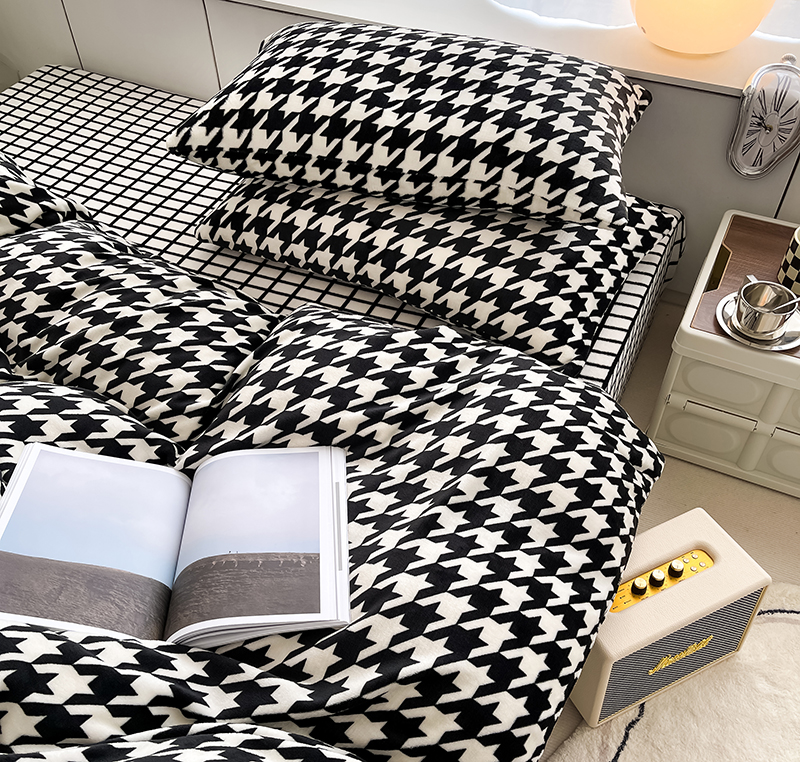 (总)丽涵家纺 2024秋冬新品牛奶绒印花千鸟格单品枕套
