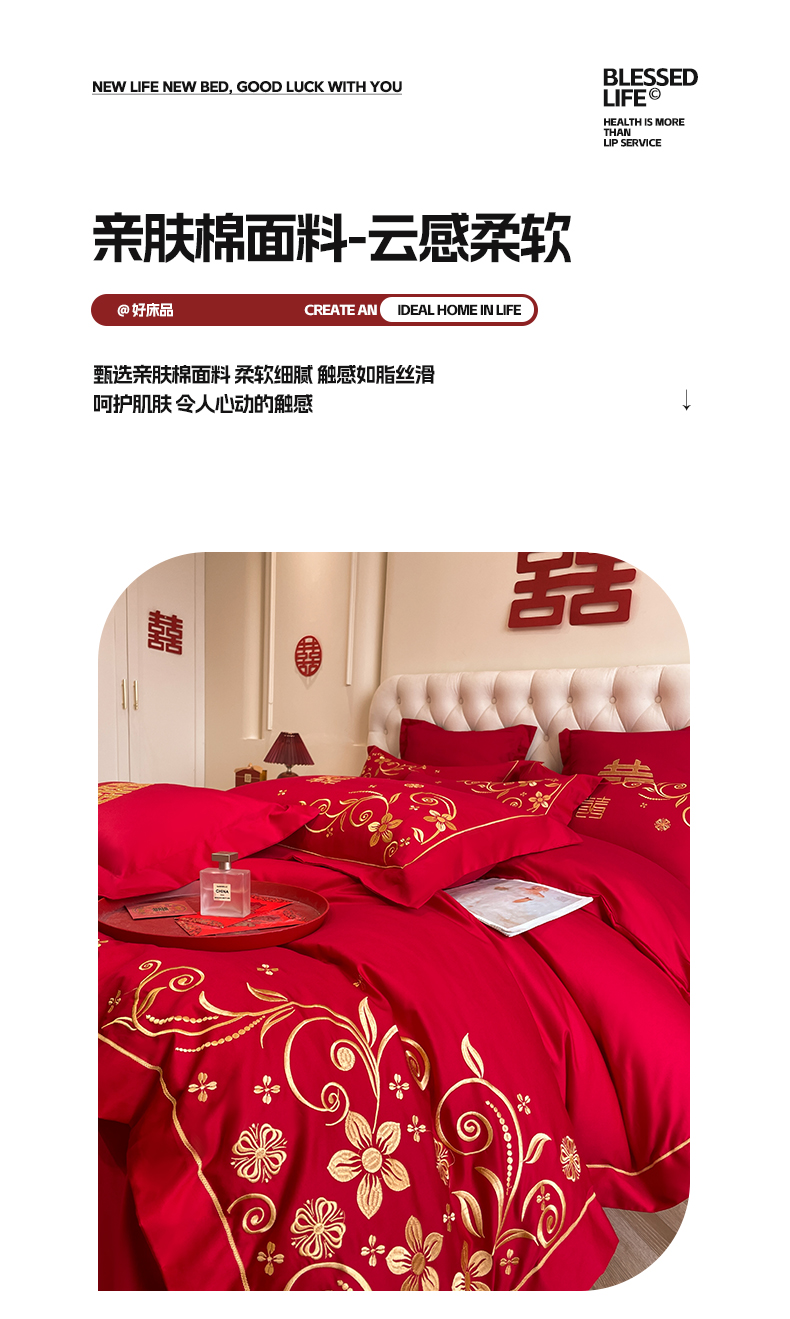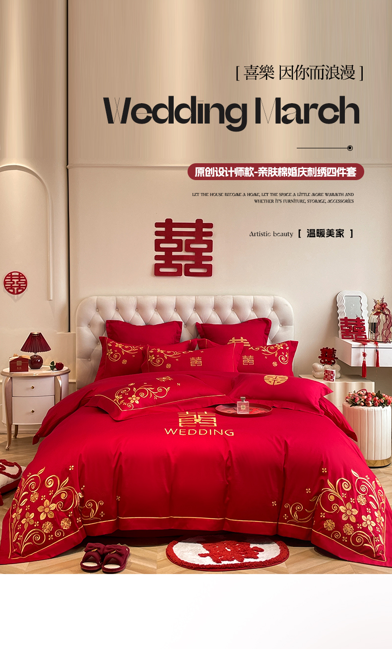 (总)欧乐蒂 2025新款设计师原创亲肤棉婚庆四件套,云喜东方,双喜临门,喜乐,喜事连连,爱恋,玫瑰爱恋,花开富贵,金枝玉叶,锦绣佳缘,龙姿风采