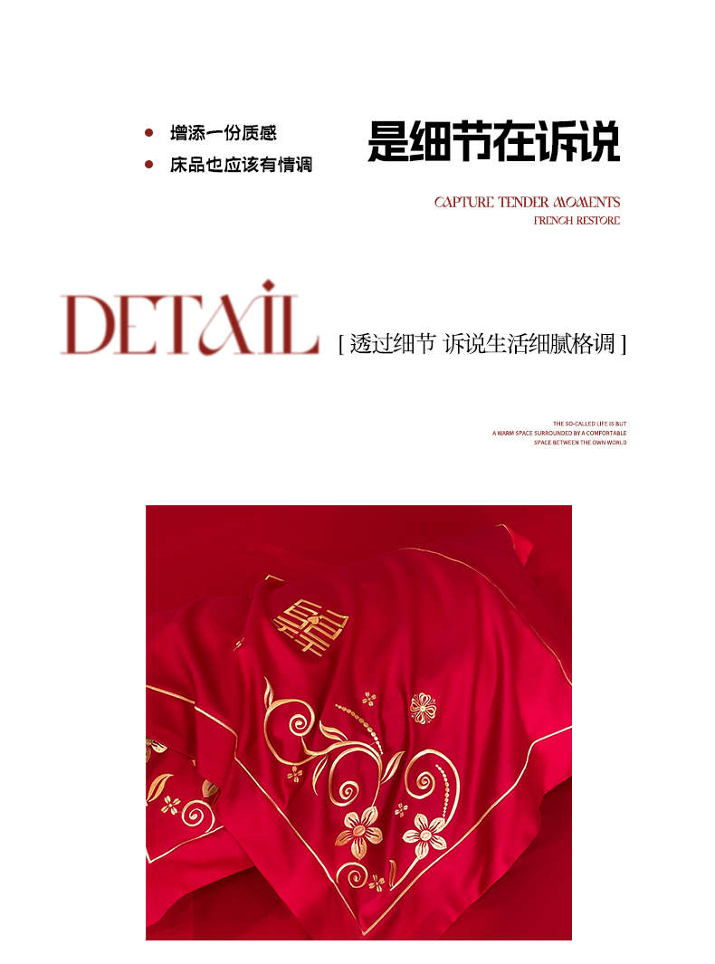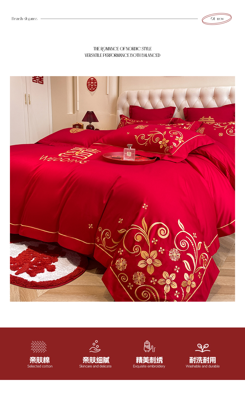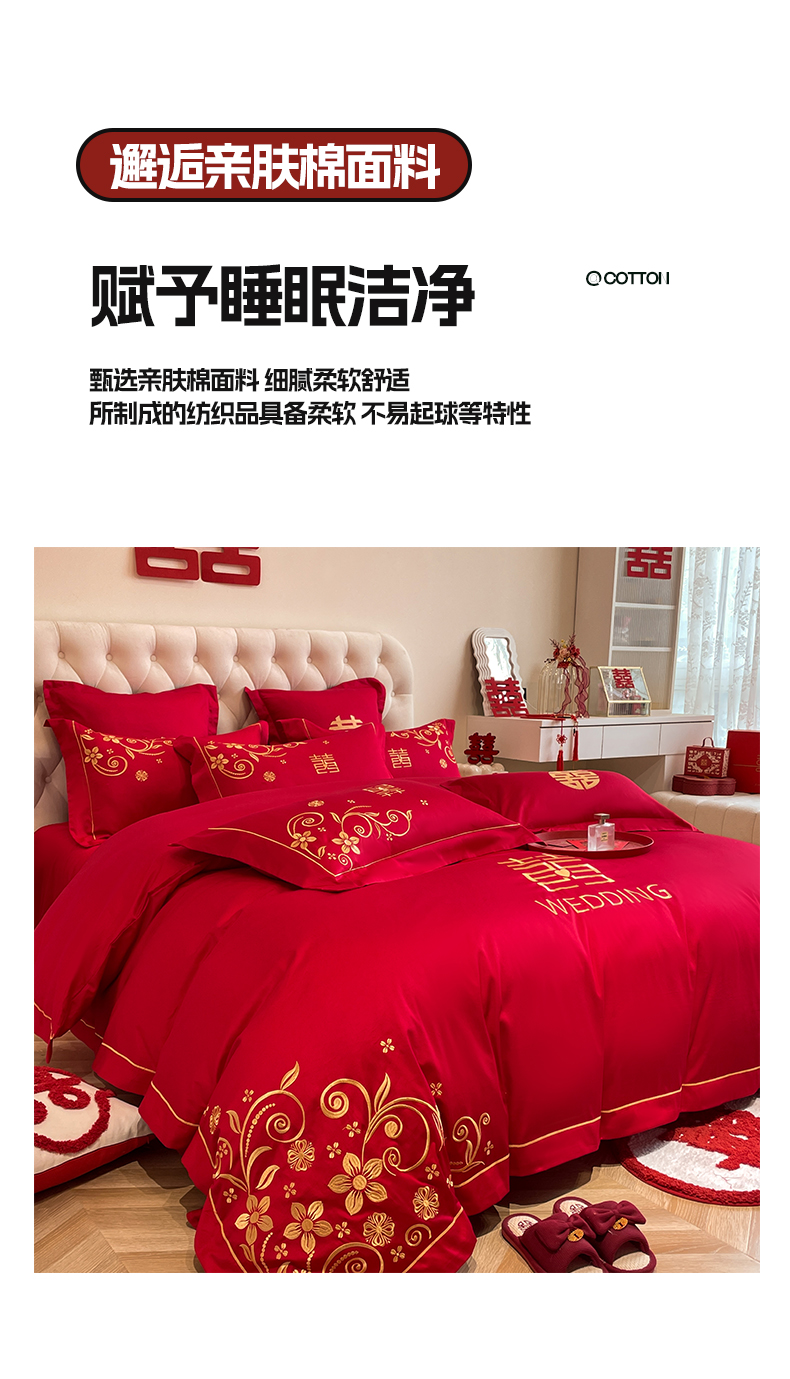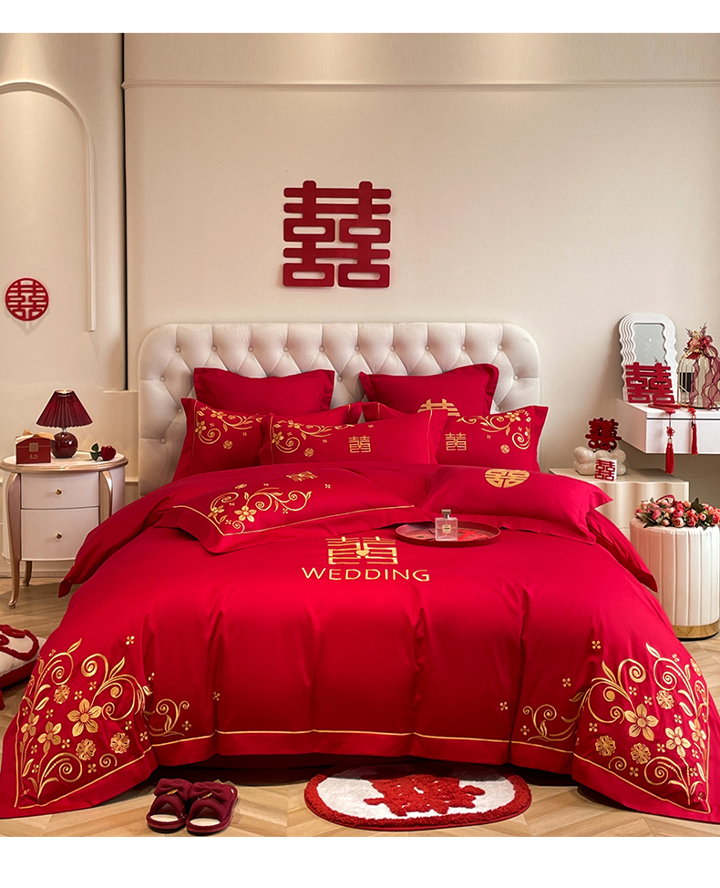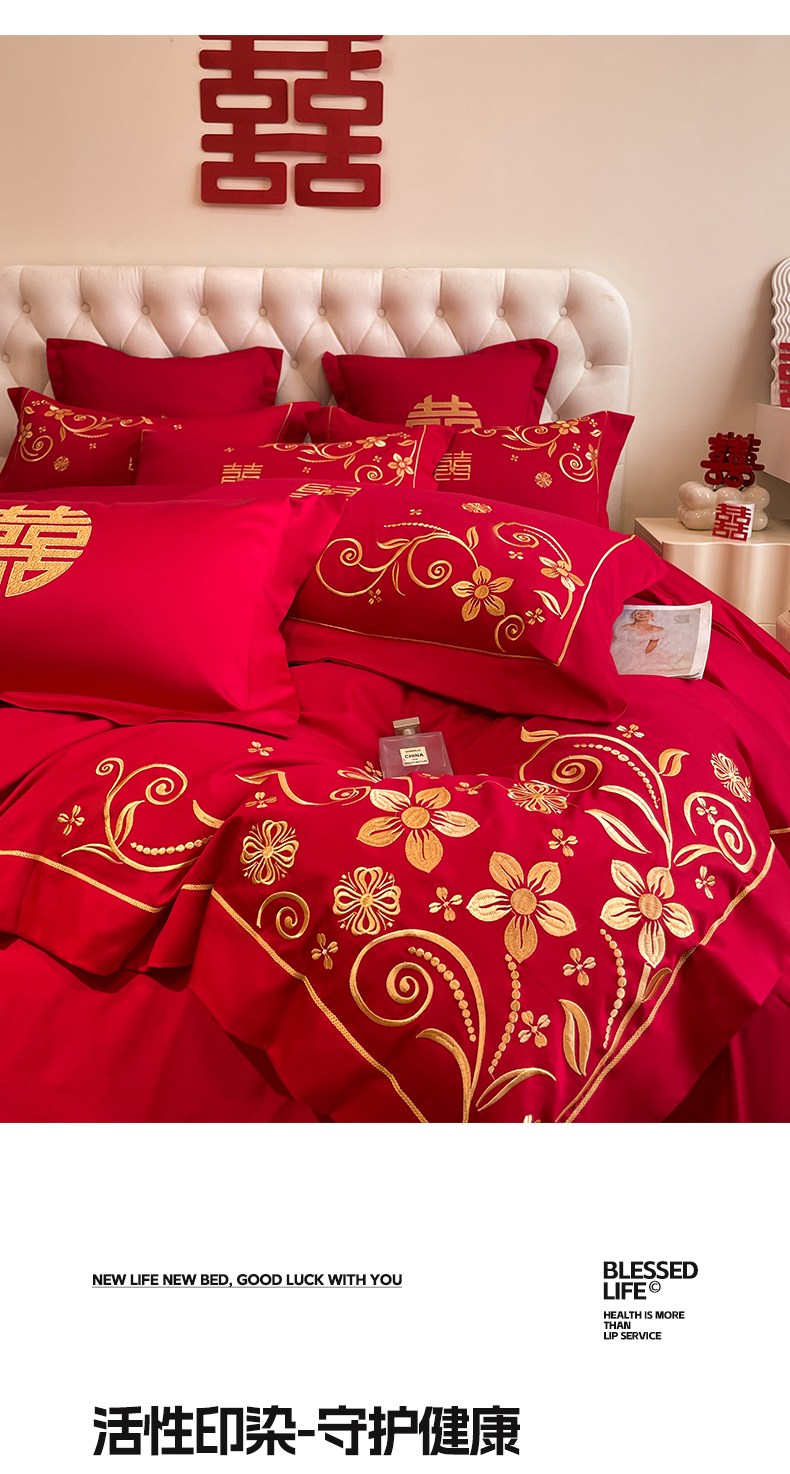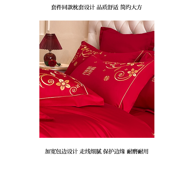 (总)欧乐蒂 2025新款亲肤棉刺绣花边婚庆四件套-浪漫花季,浪漫花季-红,浪漫花季-金