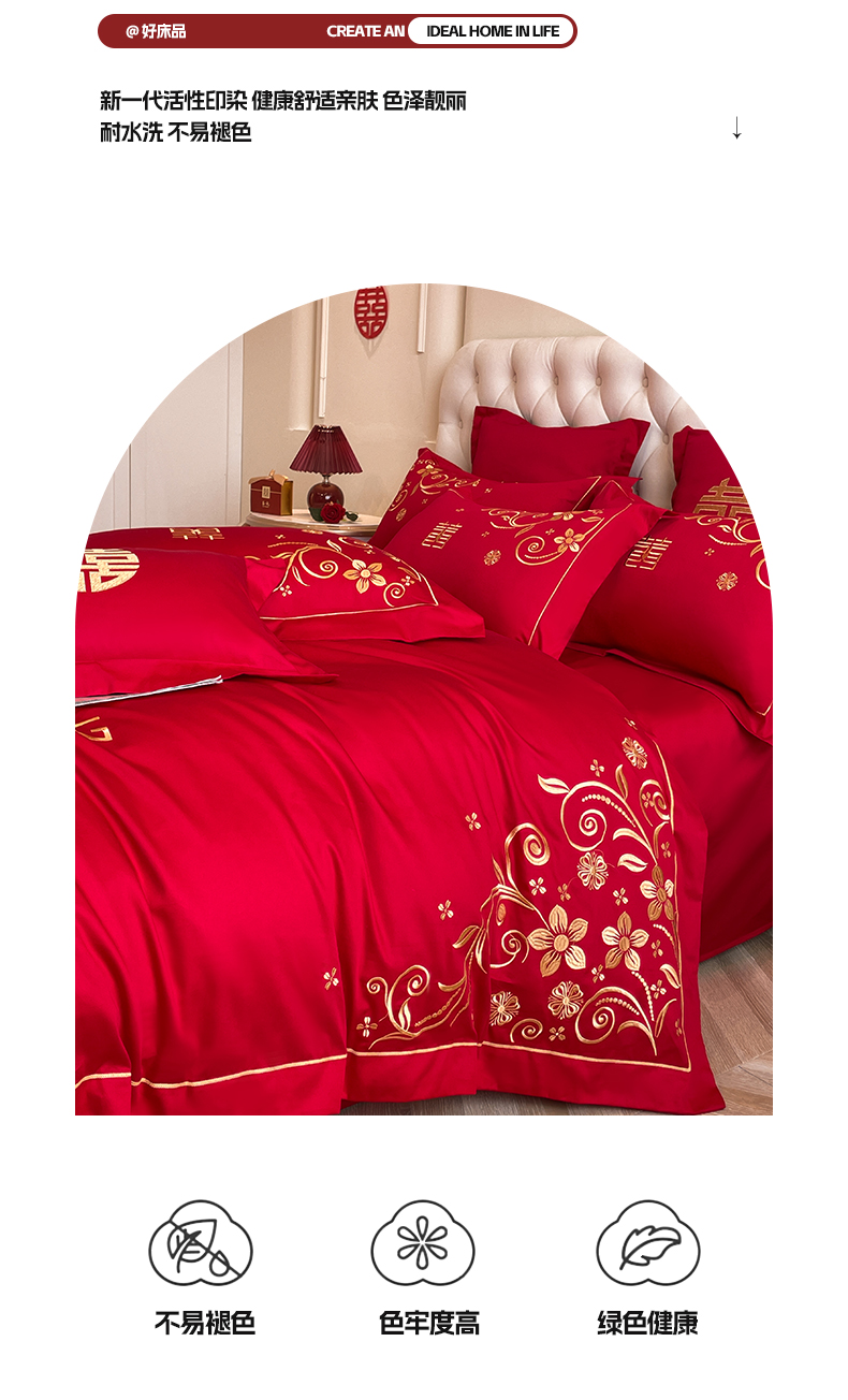 商品名称:欧乐蒂 2025新款亲肤棉婚庆刺绣四件套系列 金枝玉叶