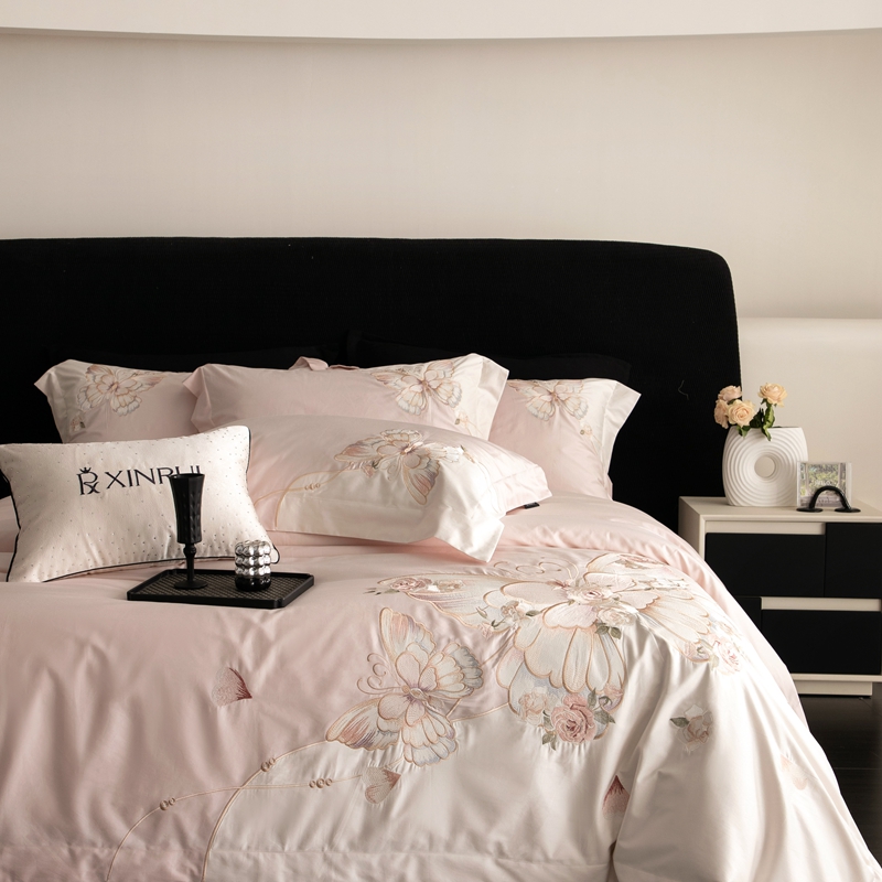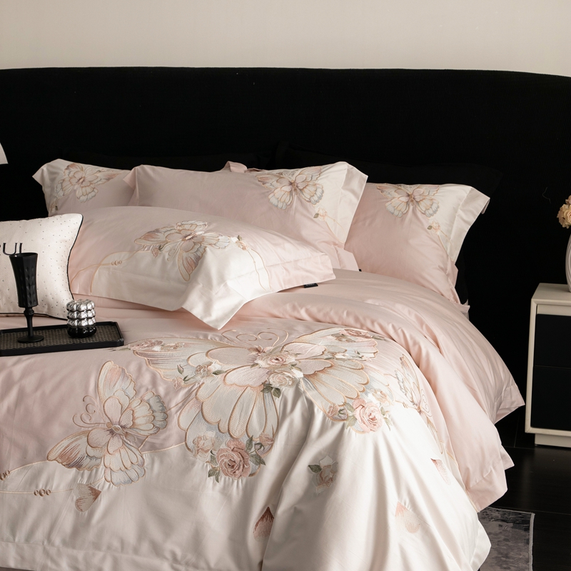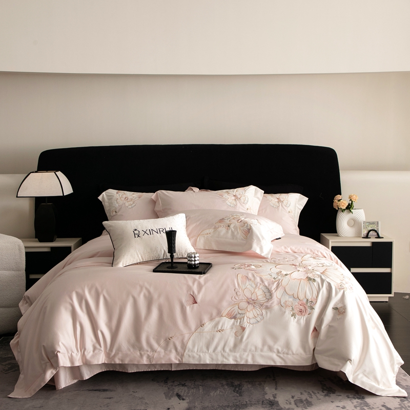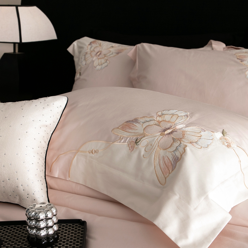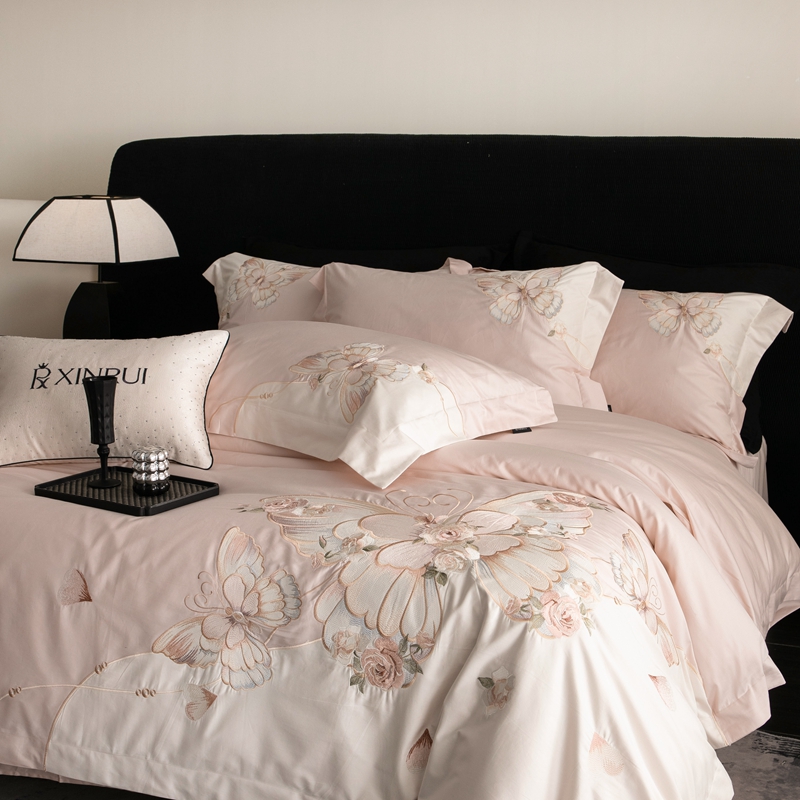 商品名称:馨蕊家居 2024秋冬新品100S高奢简约长绒棉纯棉四件套系列全棉四件套-梦幻 梦幻-初夏粉