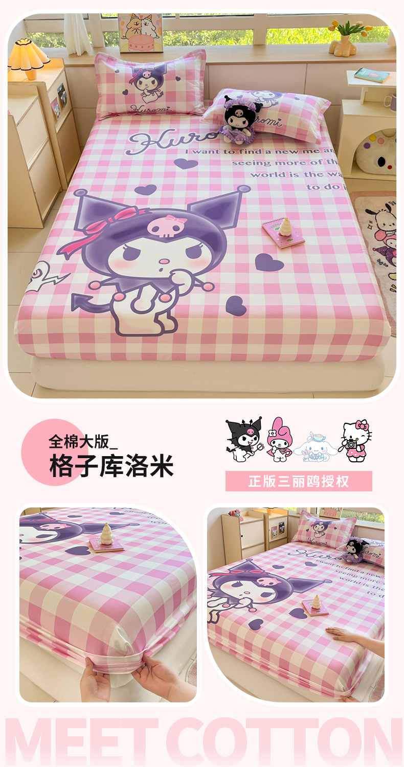 当前位置: 91家纺网 > 商品网购 > 床上用品 > 床笠 > 博雅 2024新款三丽鸥全棉大版印花床笠系列 全棉大版-格子库洛米