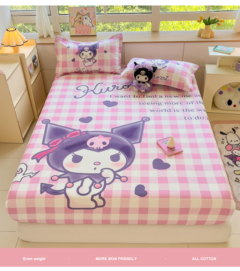 博雅 2024新款三丽鸥全棉大版印花床笠系列 全棉大版-格子库洛米